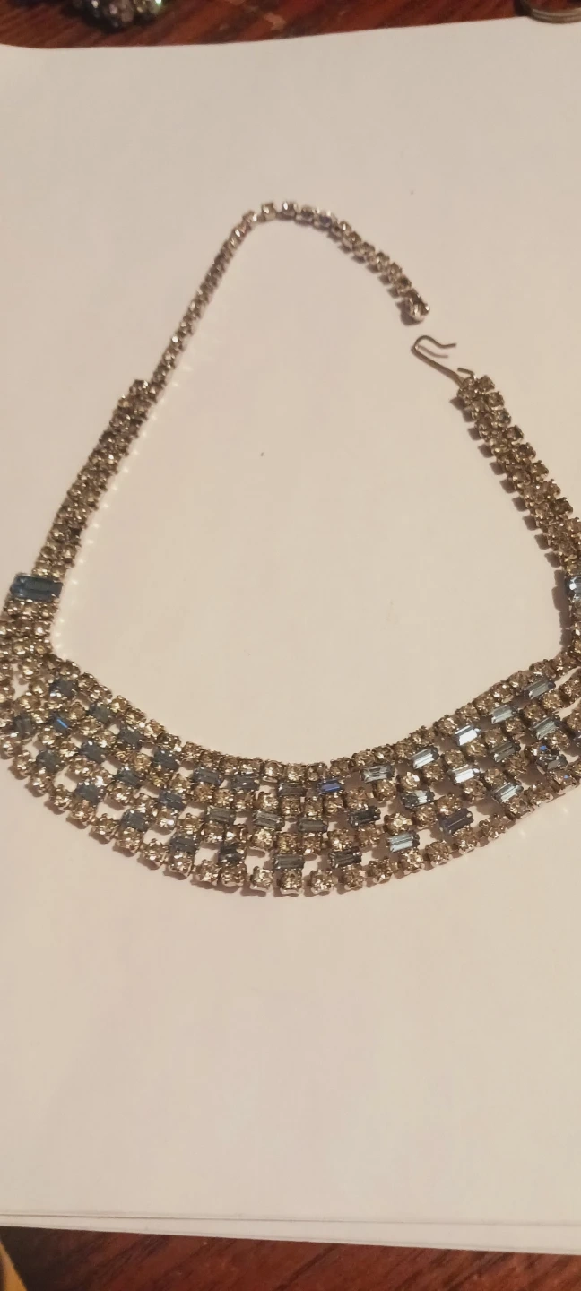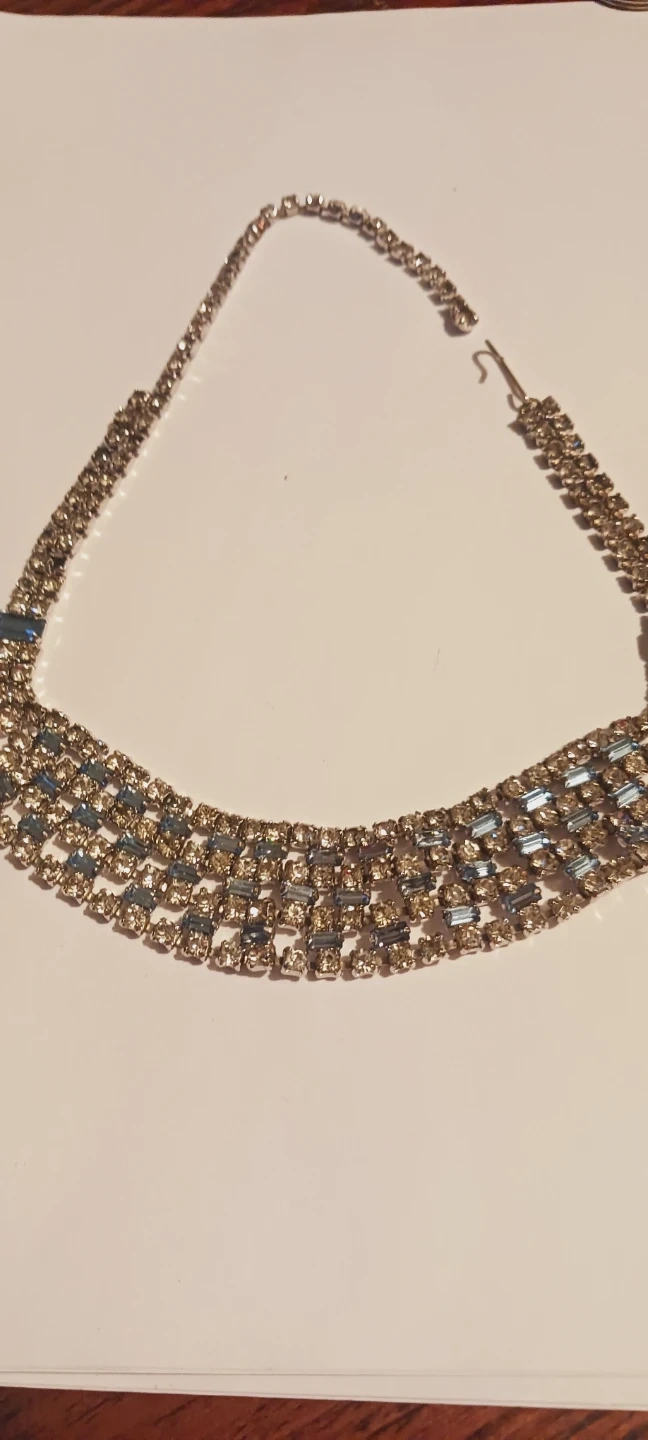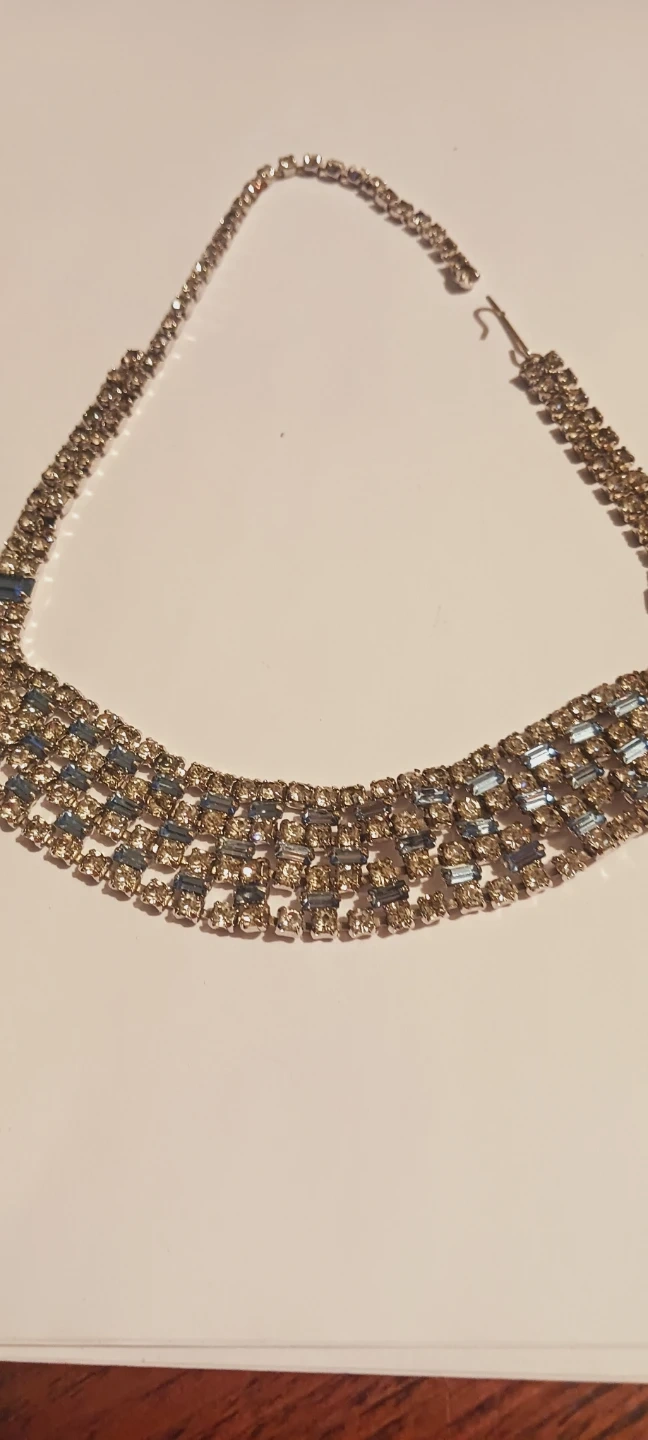 Gorgeous Vintage Art Deco Sparkling ✨️ rhinestones and blue stones necklace choker.. A beautiful accessory for adding glamour to any outfit! Excellent condition. 15" long. ALL MY PRICES ARE NEGOTIABLE !!