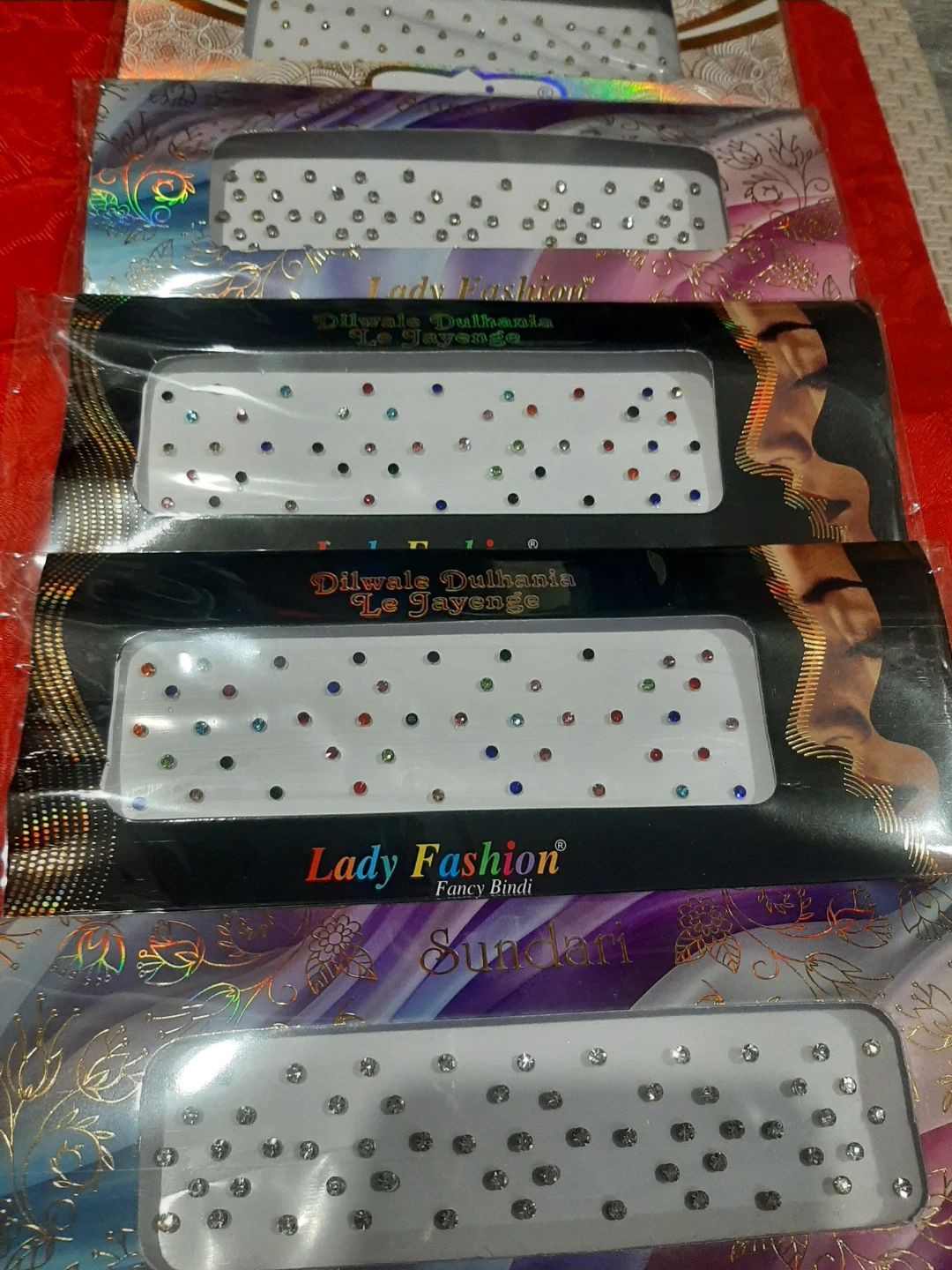 Fancy bindis with assorted colourful stones. These decorative bindi stickers add a touch of flair. Great for cultural events or everyday adornment!