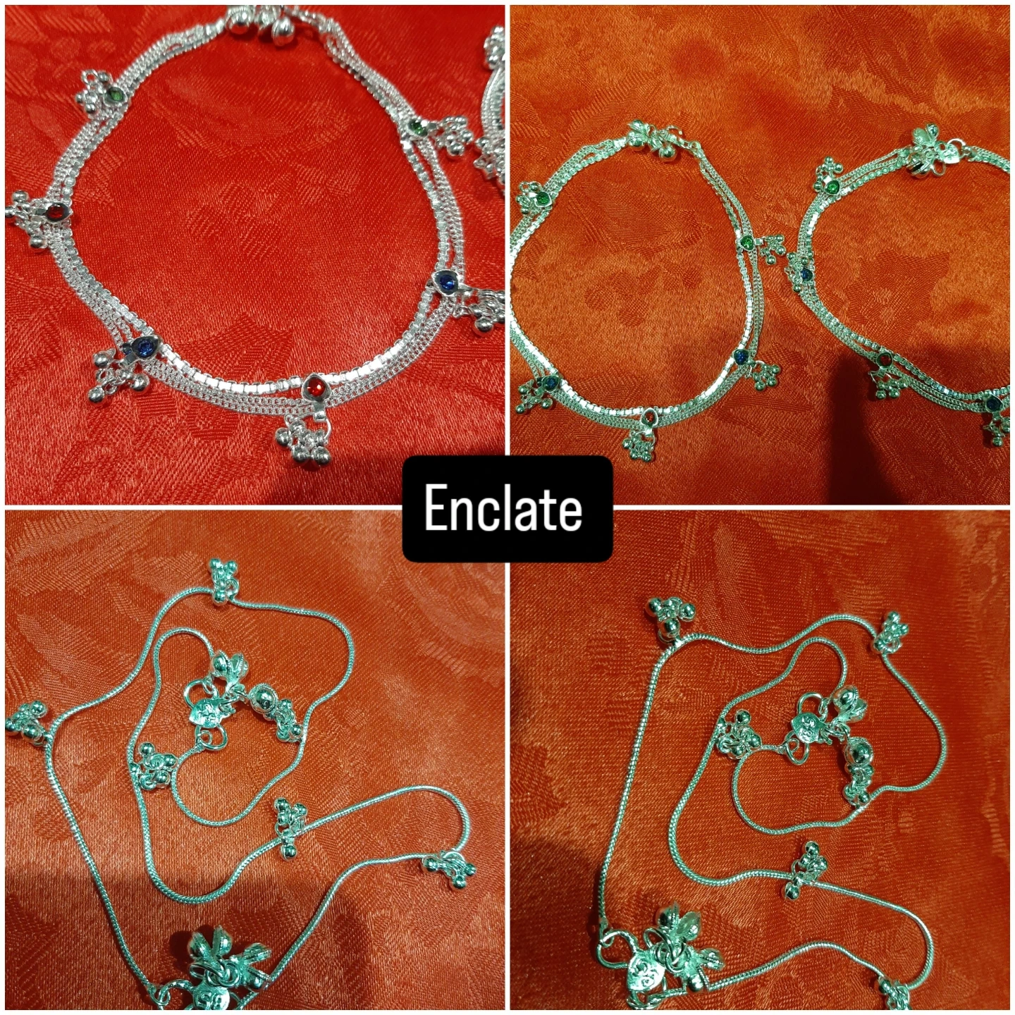 Silver Anklets with Gemstones and Bells