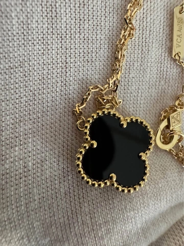 New Van Cleef VCA 18k Yellow Gold Black Onyx Pendant Necklace