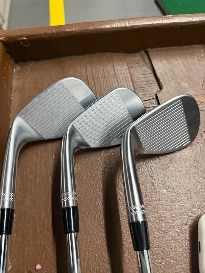 Testing waters on this wedge set. They are basically new, only hit them a few times at the range. Photos were taken after and they look great. Mid-size velvet grips.