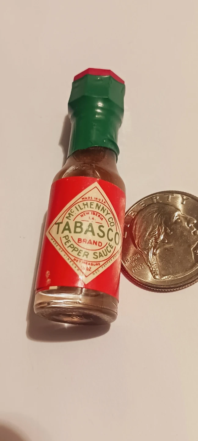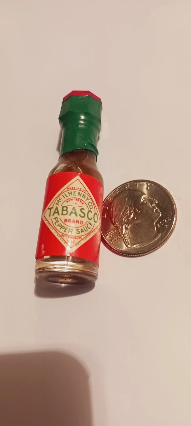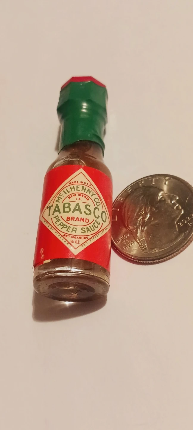 Miniature Tabasco Sauce Decorative Bottle. 2.5"×1". Only for decorative use !! ALL MY PRICES ARE NEGOTIABLE !!