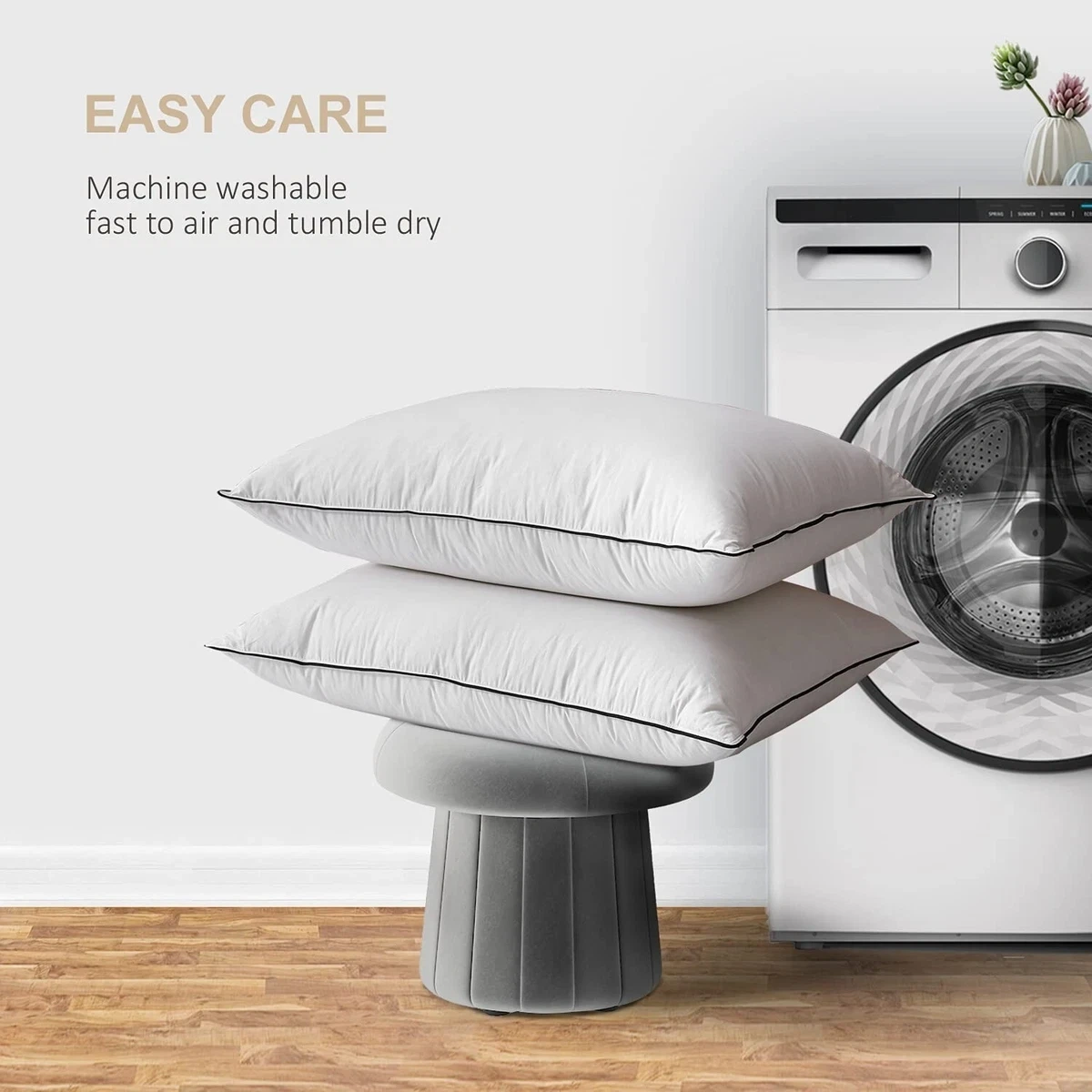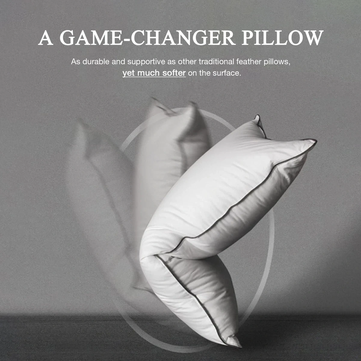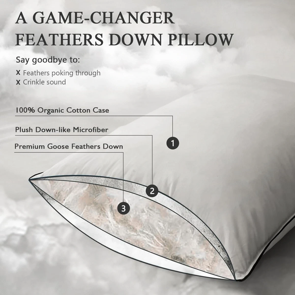 Medium Firm Feather Down Pillows Queen Size Set of 2, Luxury Feather Pillow for Sleeping, 100% Organic Cotton Cover Hotel Bed Pillow Wrapped in Polyester (White, 20"x30")