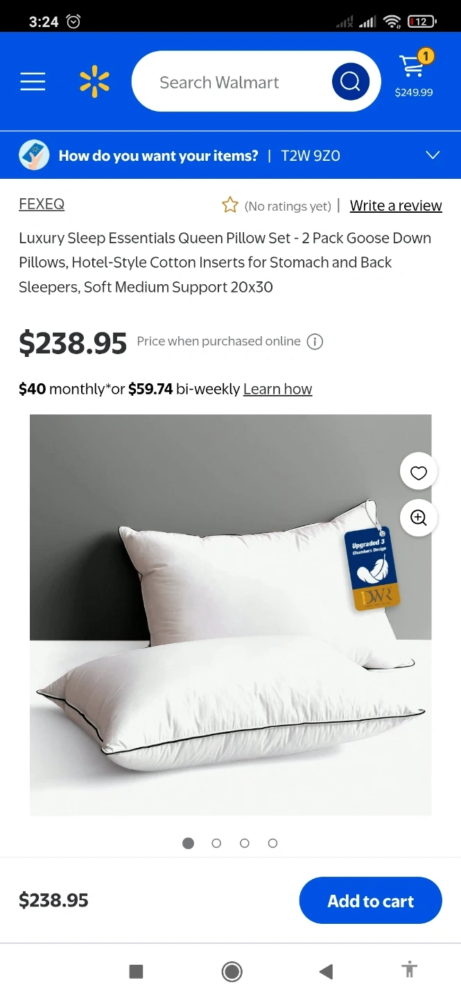 Luxury Sleep Essentials Queen Pillow Set - 2 Pack Goose Down Pillows, Hotel-Style Cotton Inserts for Stomach and Back Sleepers, Soft Medium Support 20x30