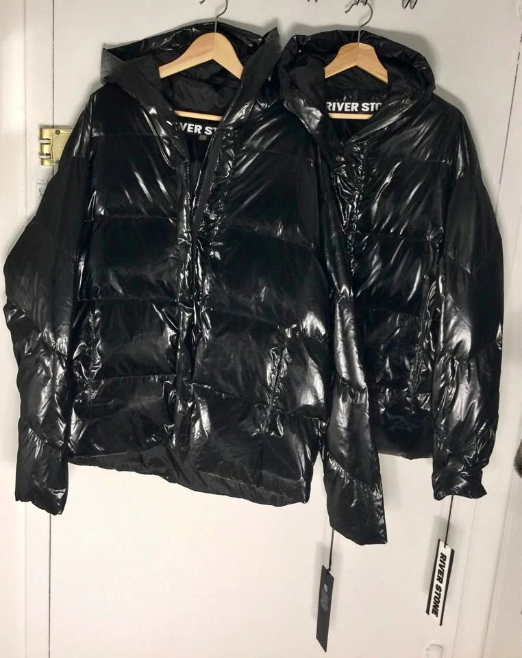 New, with tag. Riverstone down black shiny lightweight puff jackets. Sizes L and M available. Retail price was $348. Available for cash and pickup in Manhattan / Hell's Kitchen.