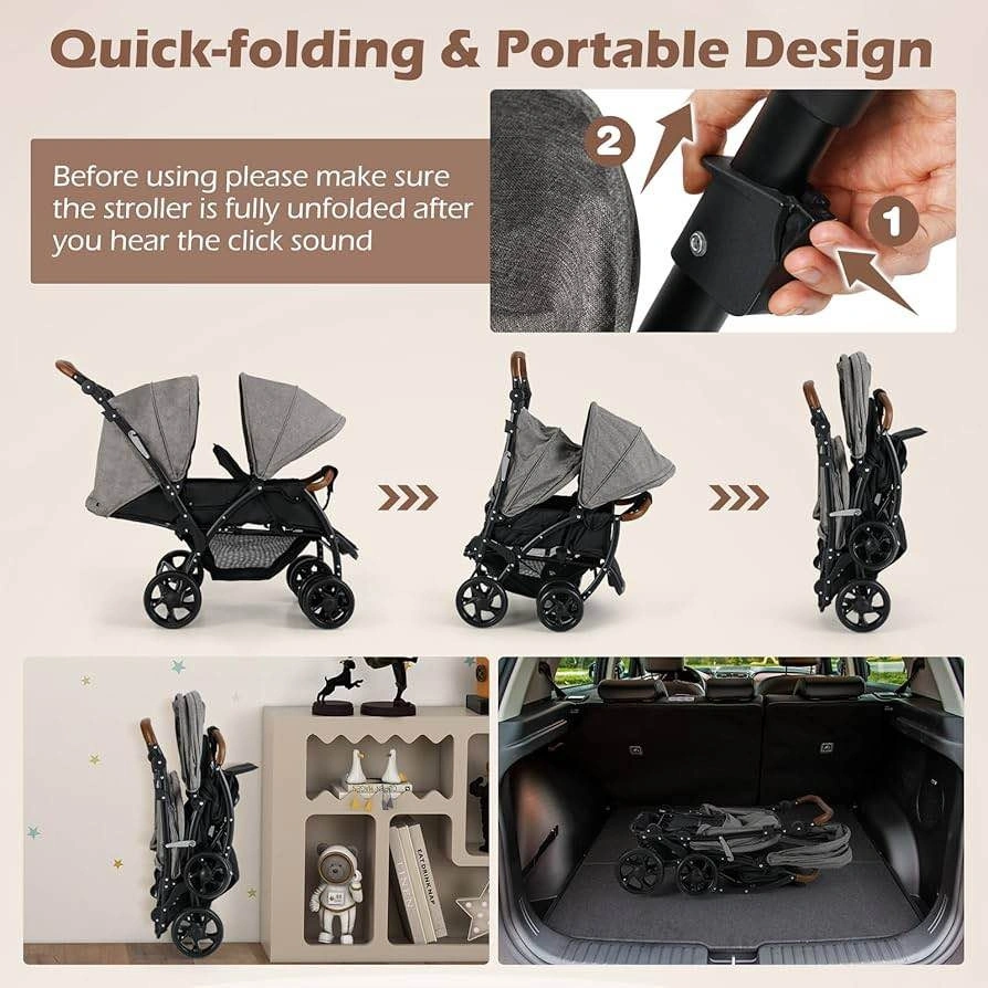 INFANS Double Stroller - Foldable Tandem Baby Stroller