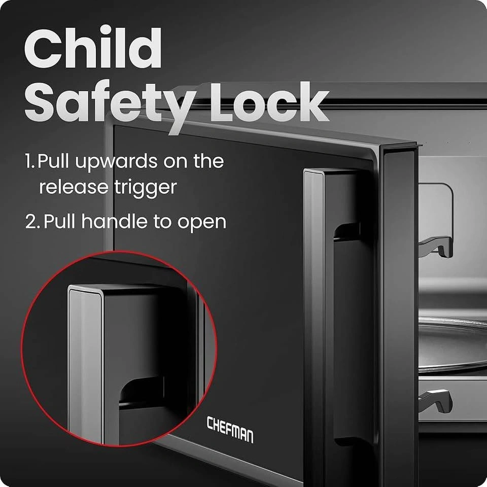 Brand new in box. Countertop microwave oven, 0.7 cu. ft., 700 Watts with 10 power levels and 6 cooking presets. Features One-Touch Express Cook, Eco Mode, Child Safety Lock, and Mute Button. Color: Black.