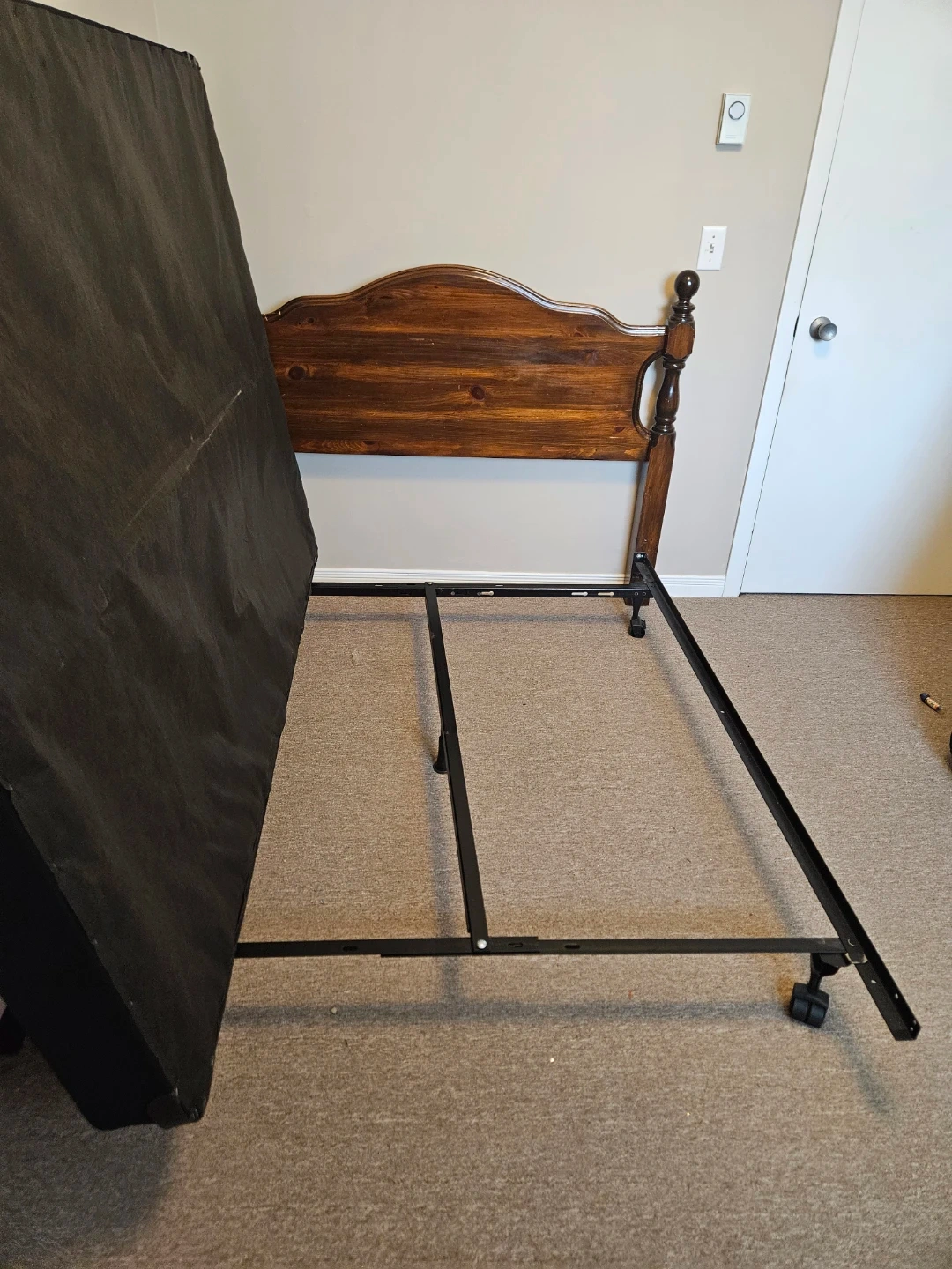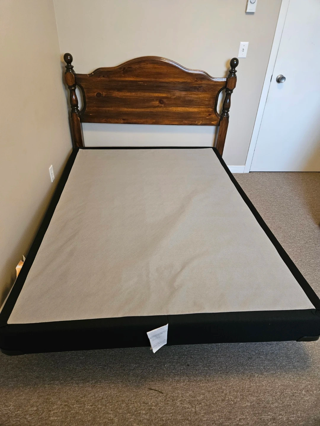 Wooden Headboard Bed Frame, Box Spring and Mattress
