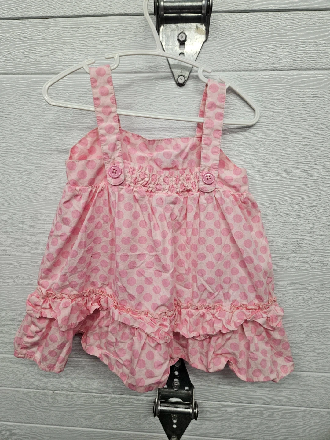 This cute pink dress features a fun polka dot pattern and a sweet Minnie Mouse graphic. It's made of 100% cotton for comfort. This little dress is perfect for a toddler's wardrobe!