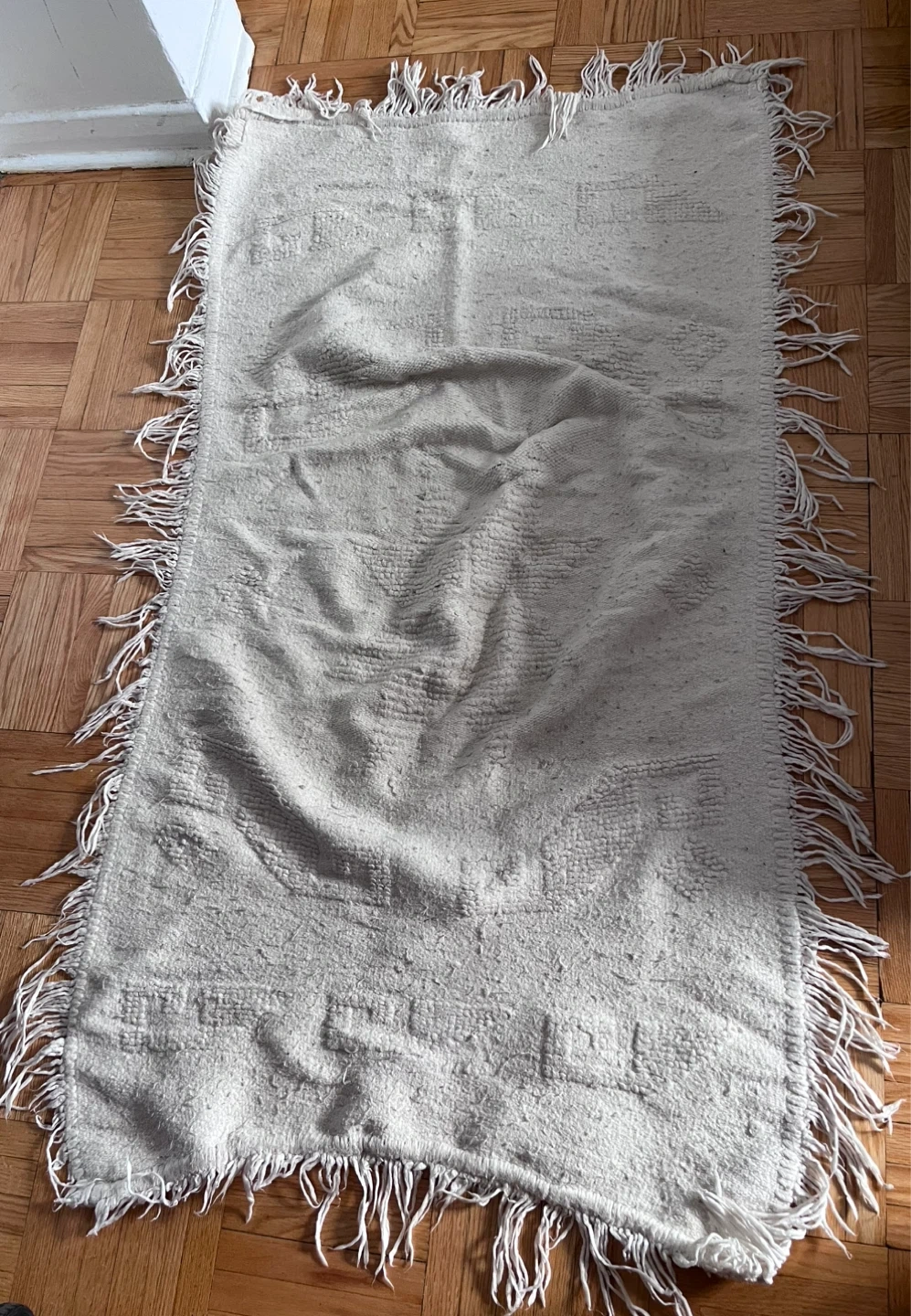 Cream Fringed Throw Rug