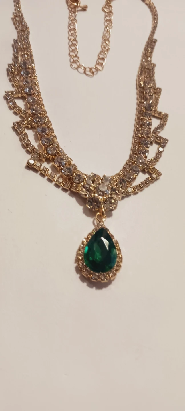 New !! Gold Tone Necklace with Emerald Green Pendant