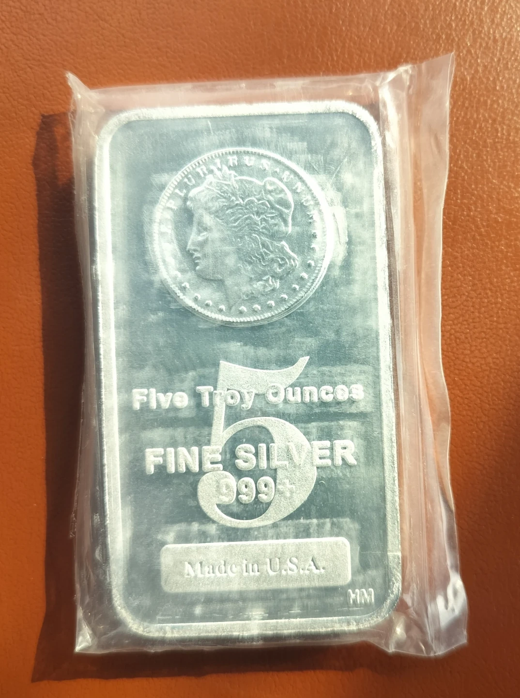 This is a 5 troy ounce bar of fine silver, with a purity of 999+. It's made in the U.S.A. and comes in protective packaging. This bar is a great addition to any silver collection!