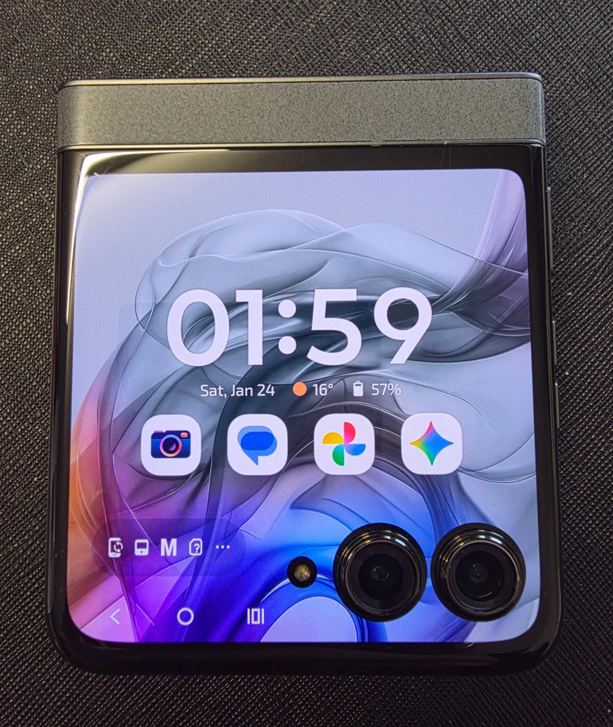 This is a Motorola Razr 2024 foldable smartphone. The phone works only with t-mobile, metro or mint mobile. It features 256 GB of storage and 8GB of RAM + 8 RAM boost. The camera system includes a 50MP rear camera + 32MP front facing camera. The internal display is an AMOLED 2,640x1,080 pixels with 120Hz refresh rate and 3000 nits brightness. Nano SIM + eSIM. A 4200 mAh battery. Charging 30W wired and 15W wireless. The phone is in used condition and works fine. It comes with a USB-C charging cable only. Thanks