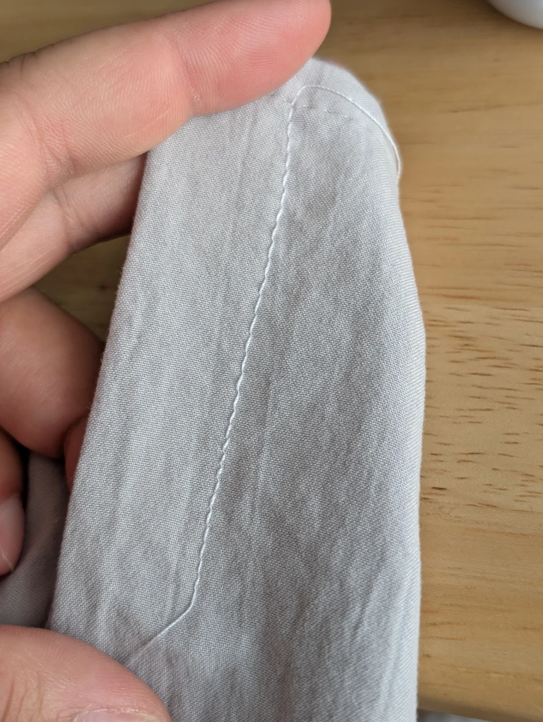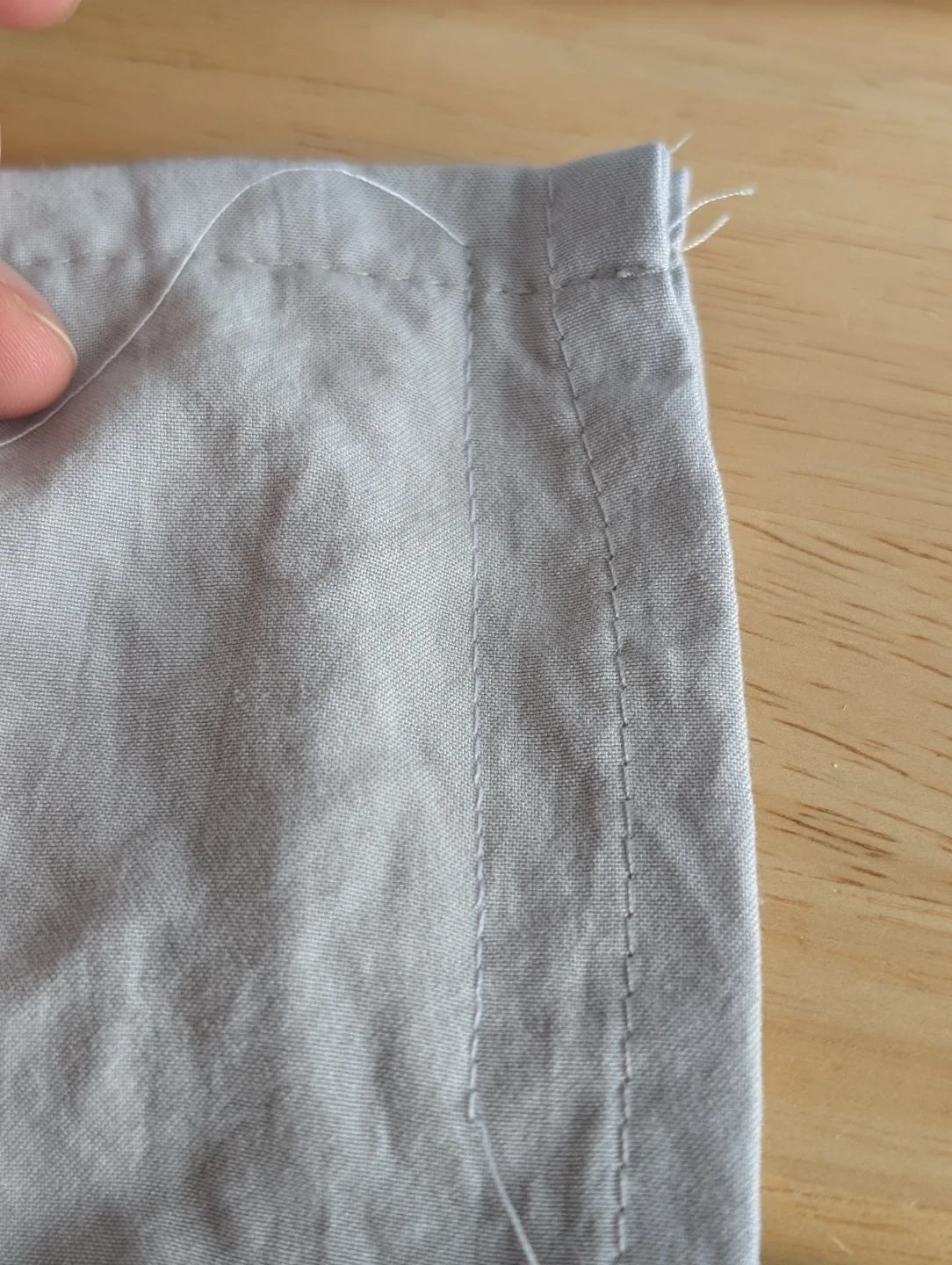 This is a portable sewing machine with multiple stitch options. It's white with pink accents and has a built-in handle for easy carrying. It includes a sewing guide ruler right on the sewing deck. This machine would be great for quick mends or small craft projects!