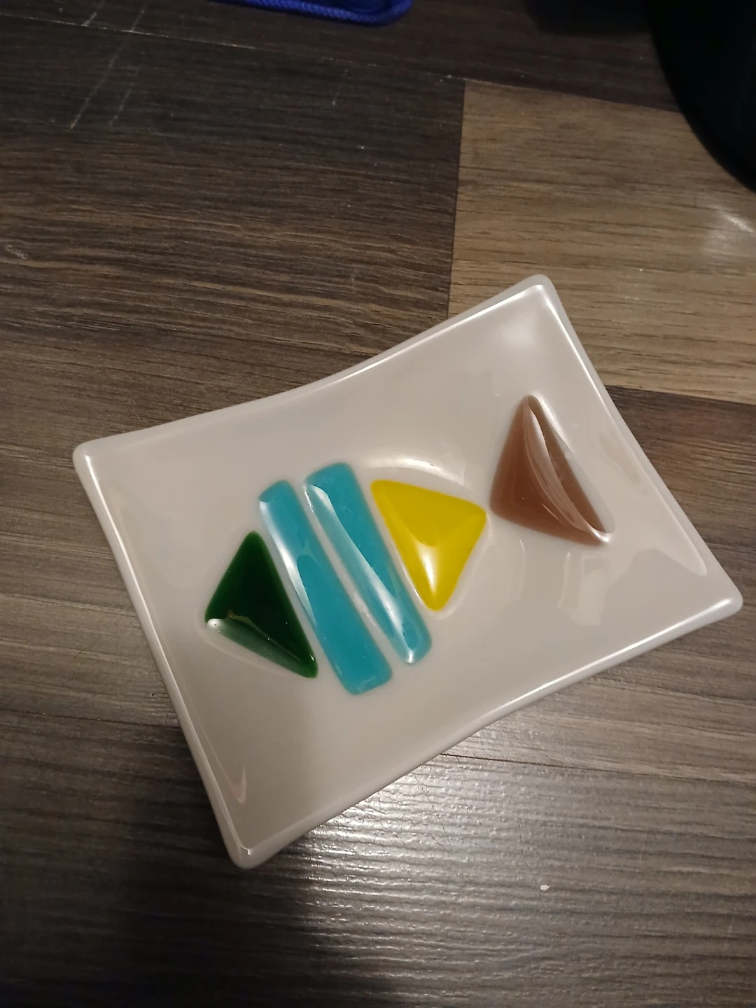 Decorative Ceramic Dish with Colorful Glass Accents