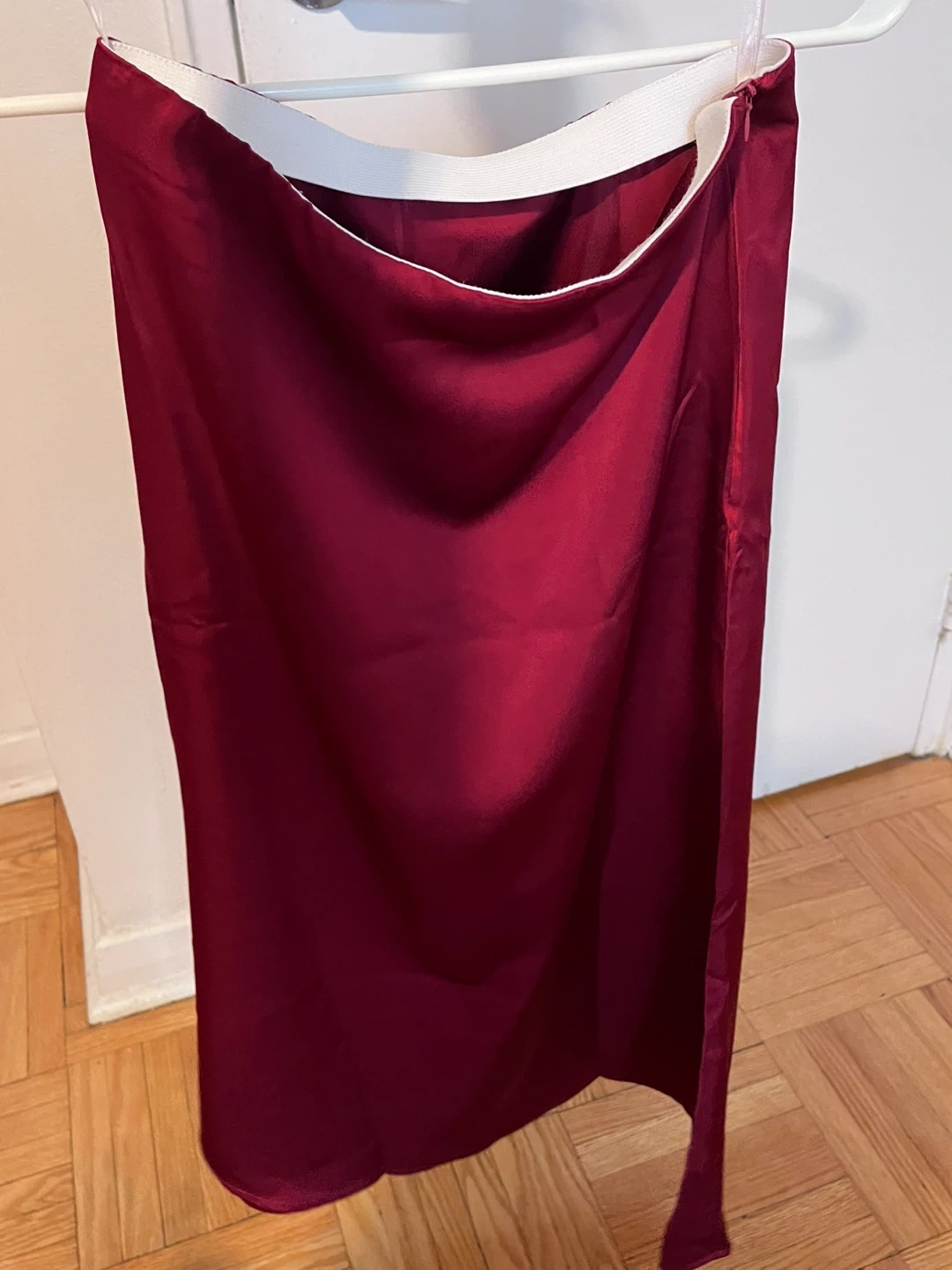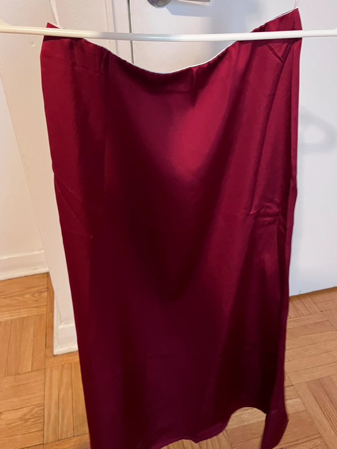 Maroon Satin Midi Skirt
