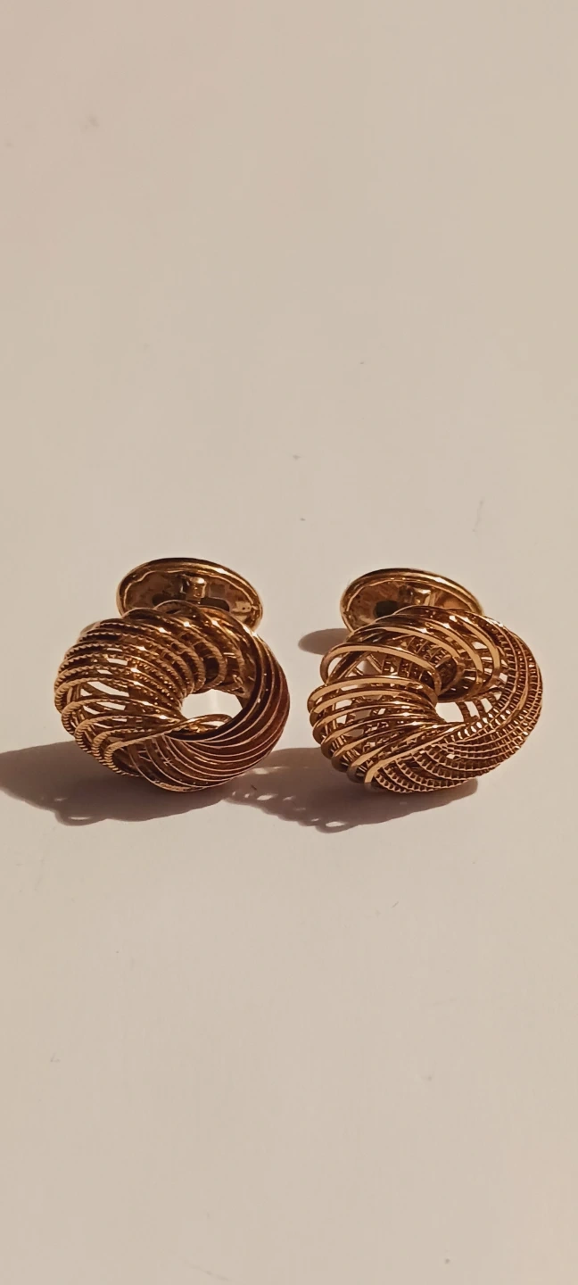 These beautiful cufflinks feature a unique gold-tone swirl design. They're likely for dress shirts. Excellent condition, like new. ALL MY PRICES ARE NEGOTIABLE !!