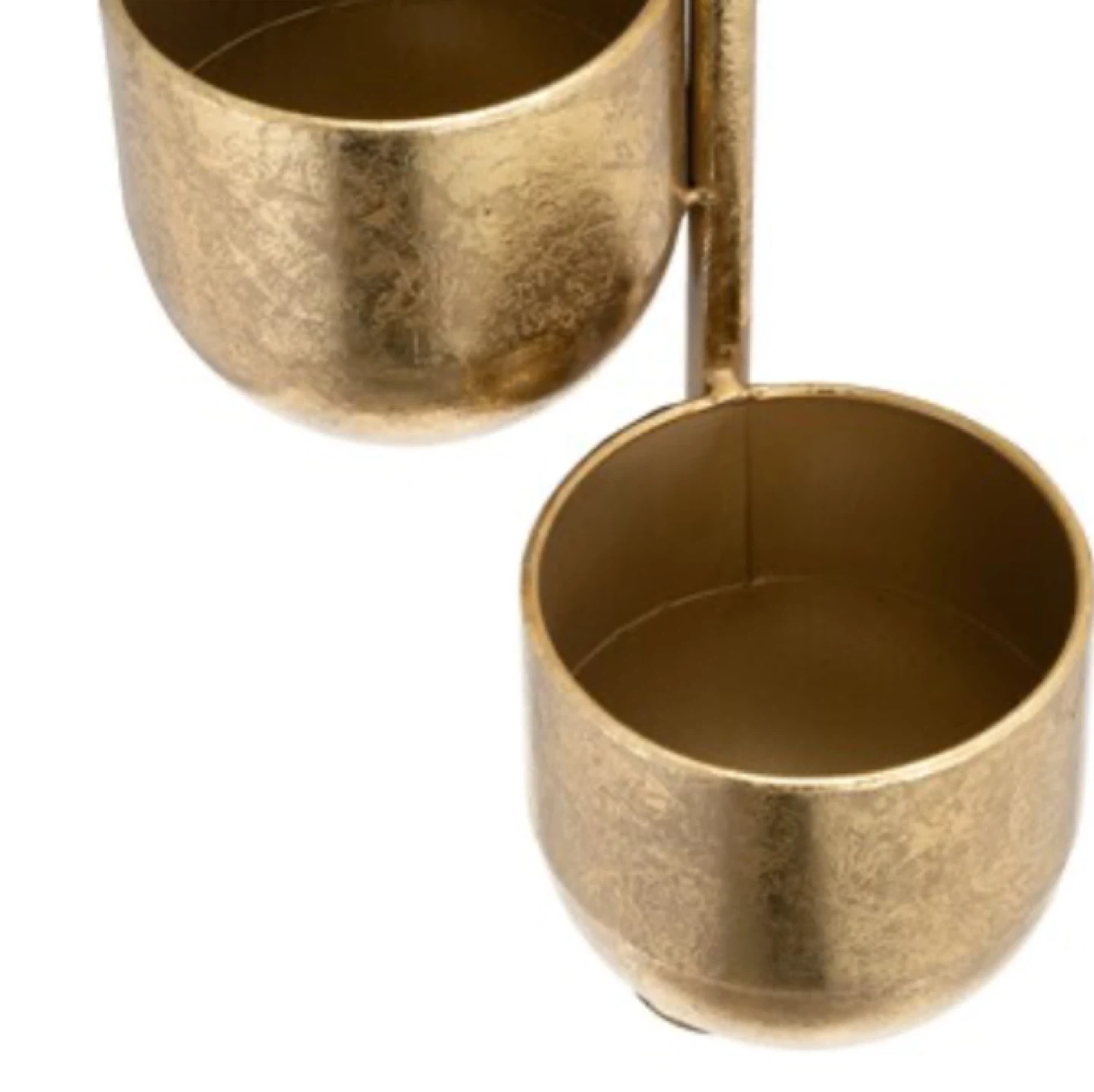 Go for the gold! Add a fun and creative hanging planter to the mix to plant your favorite succulents, cacti and other small plants. Hang in your kitchen window, on your patio or porch, or anywhere you'd like to see more plant life thrive. Made out of iron, it's not only an attractive addition to your home, it's high quality and durable!