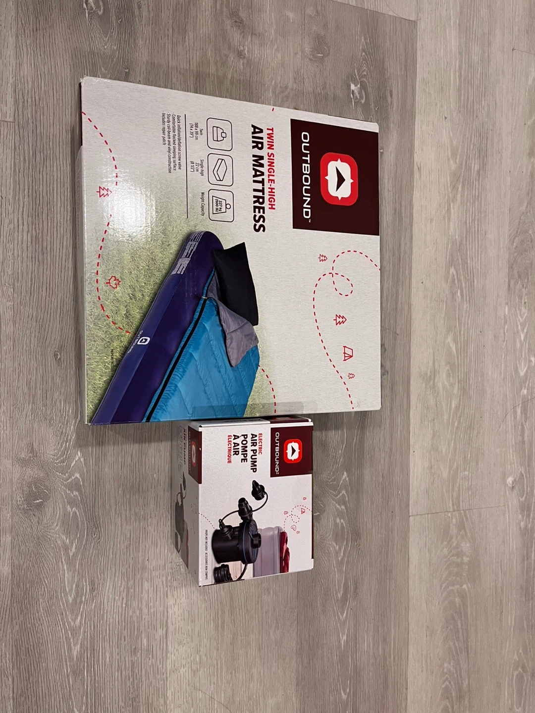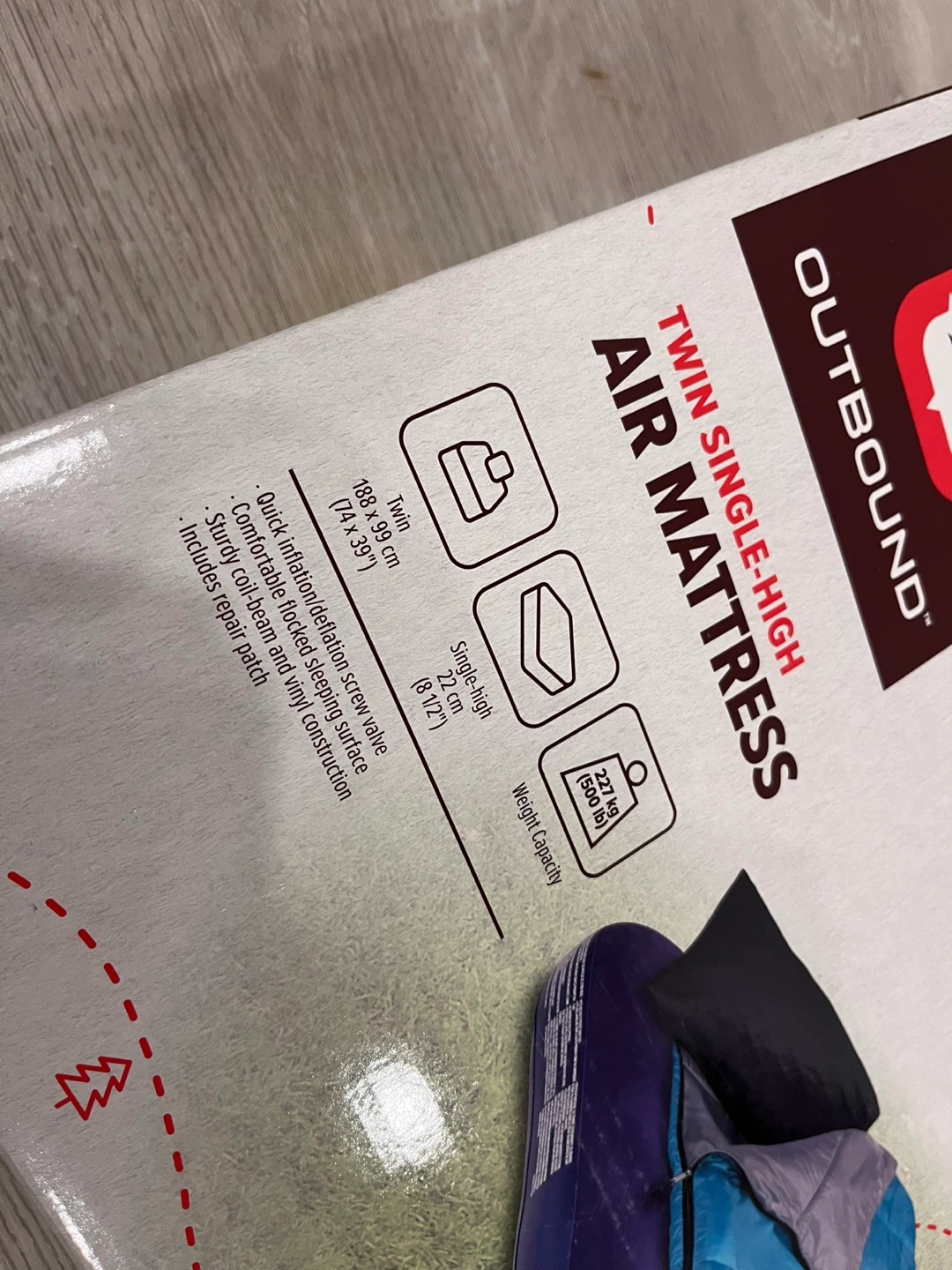 Air mattress is twin size, single-high (22cm), holds 227kg