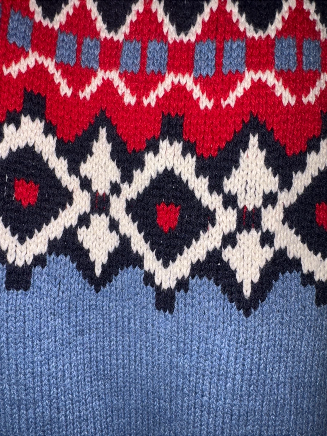 Chaps Fair Isle Sweater - Blue/Red/White - Size M