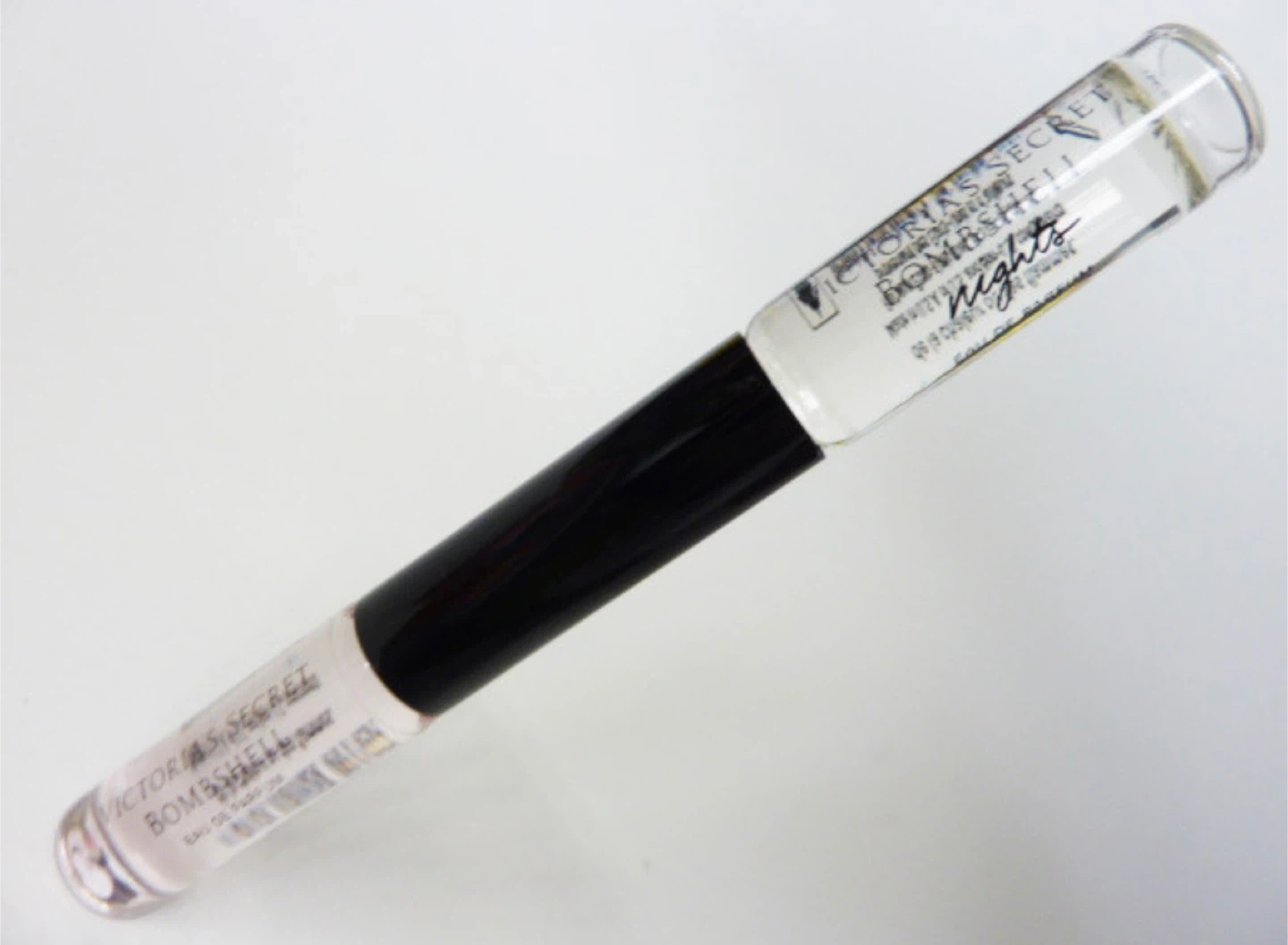 Victoria's Secret Bombshell Nights rollerball perfume. This is a 7ml (.23 fl oz) Eau de Parfum. It's perfect for on-the-go touch-ups! Fragancias: Contiene dos aromas distintos en extremos opuestos del mismo tubo.