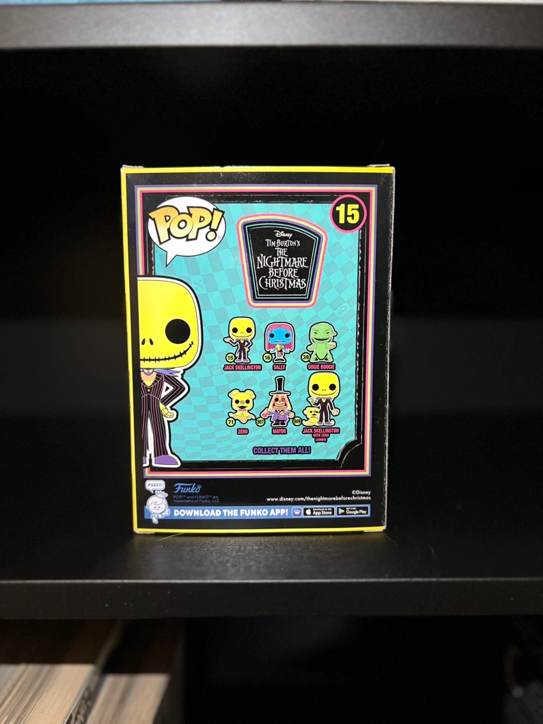 This is a Funko Pop! vinyl figure of Jack Skellington, number 15 in the series. It's from Disney's The Nightmare Before Christmas. The figure comes in its original box.