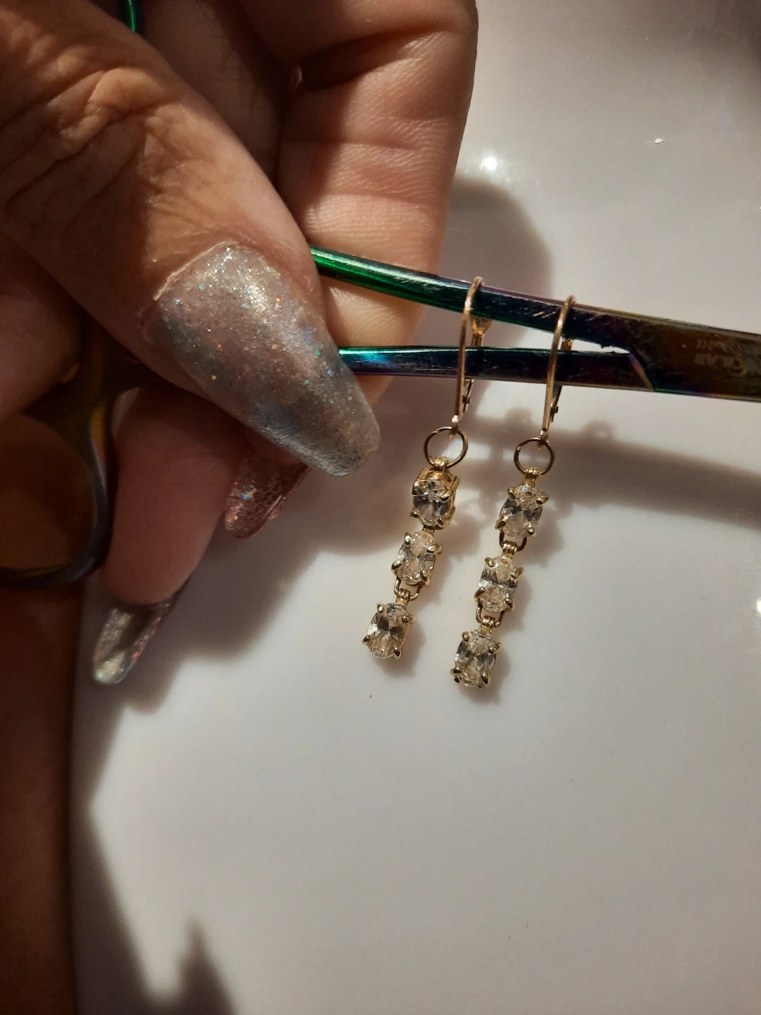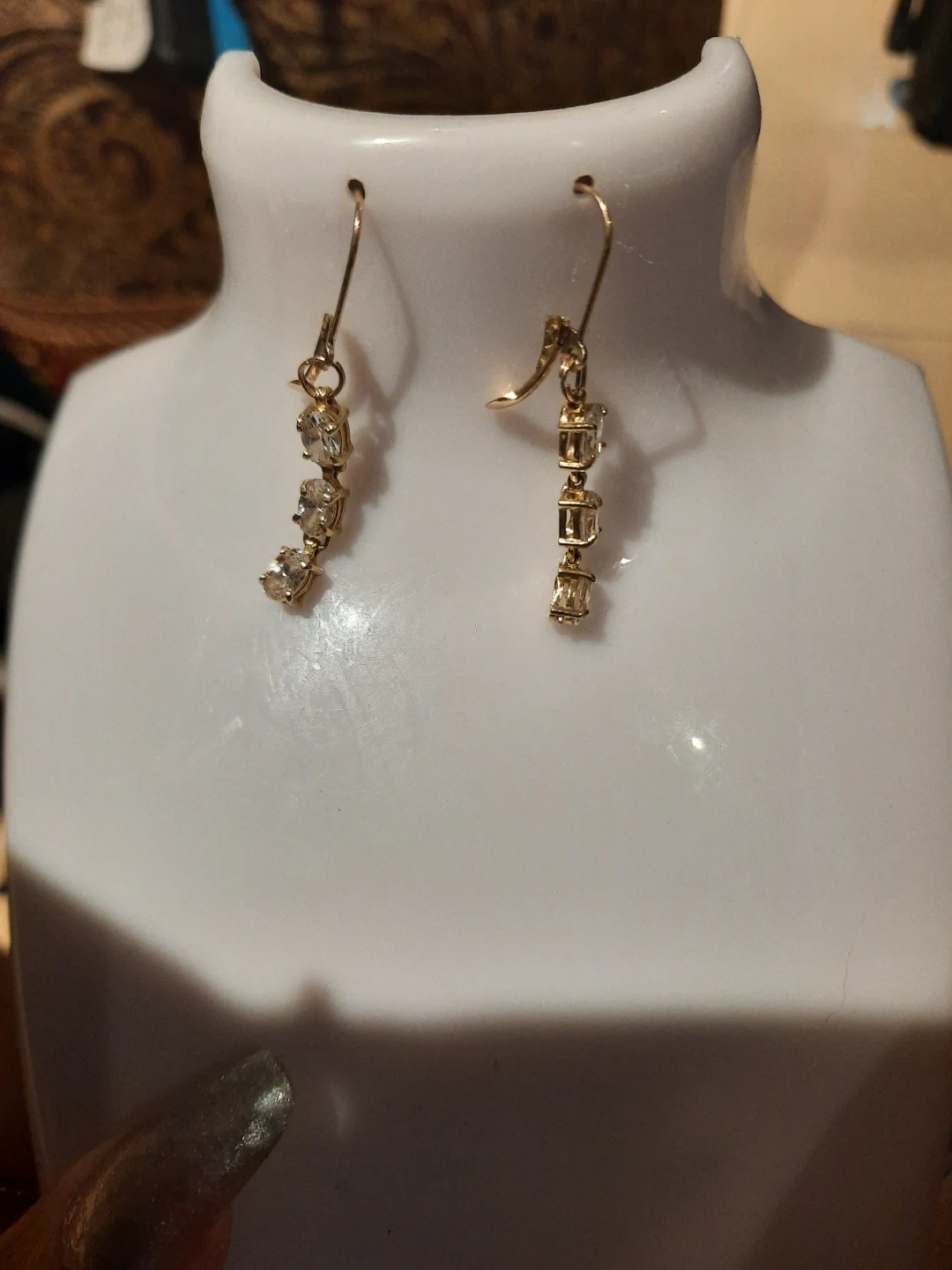 These elegant dangle earrings are crafted from 10k gold. They feature a cascading design with sparkling stones. Lever-back closures ensure a secure and comfortable fit.
