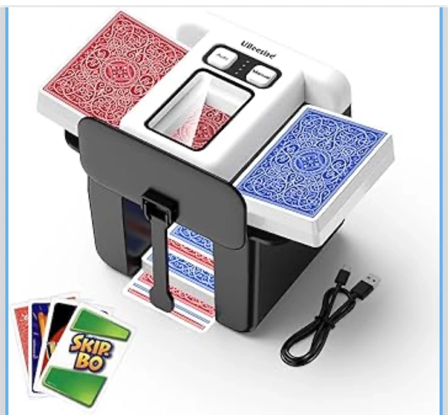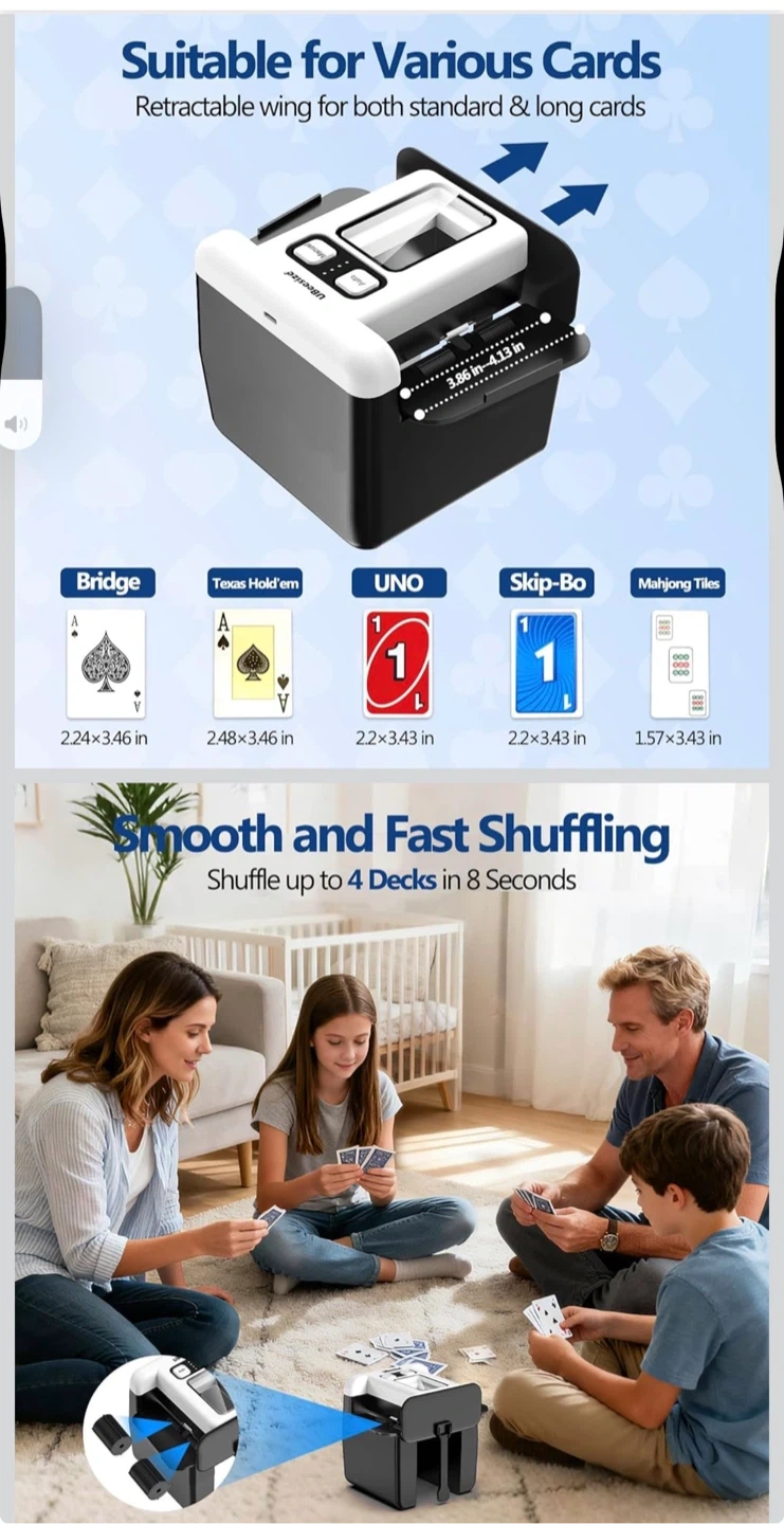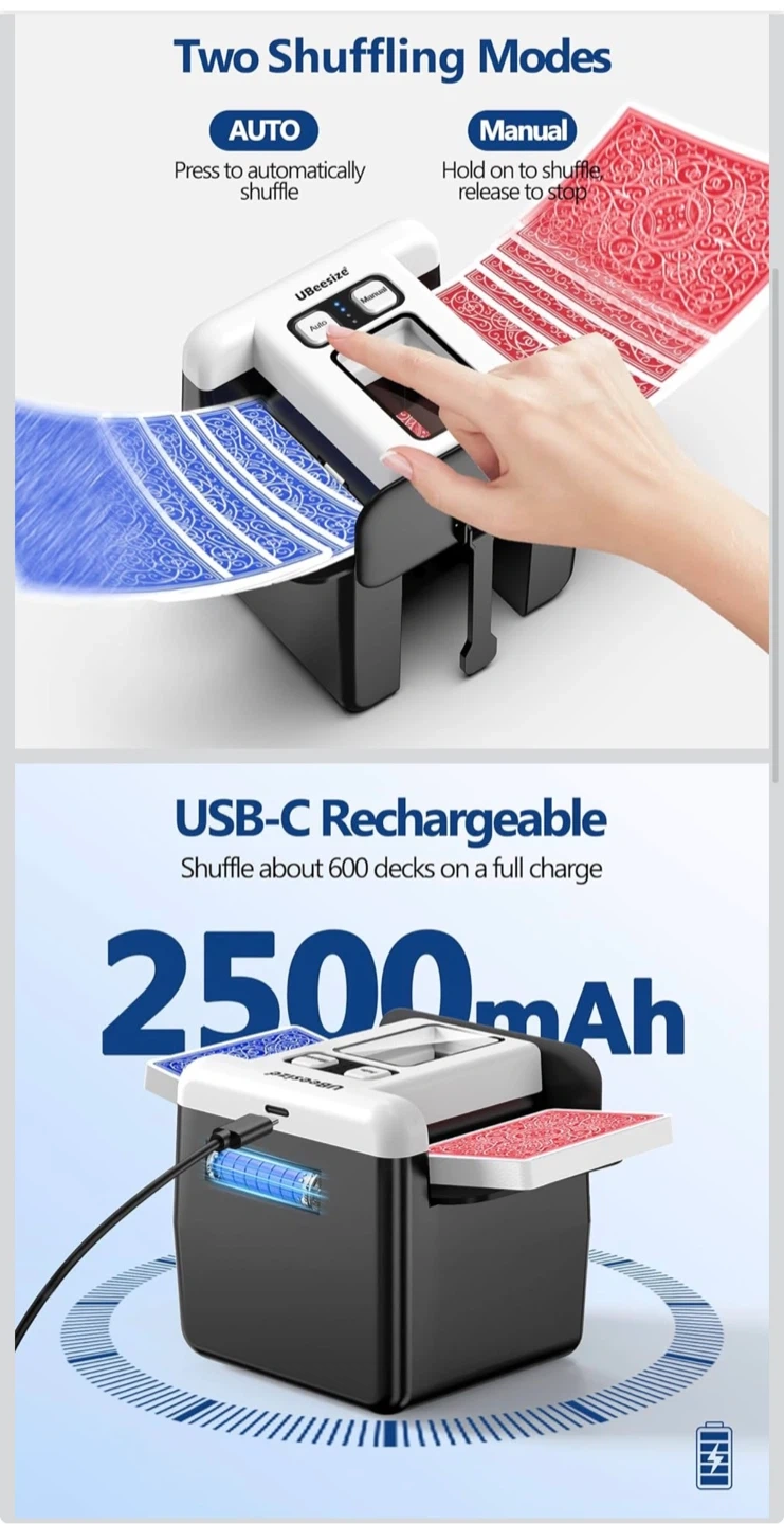 Automatic Card Shuffler for 1-4 Decks, Rechargeable Card Shuffler with Dual Modes, Low Noise Portable Auto Shuffling Machine for Playing Cards Games Such as Poker, UNO, Bridge and Skip-Bo