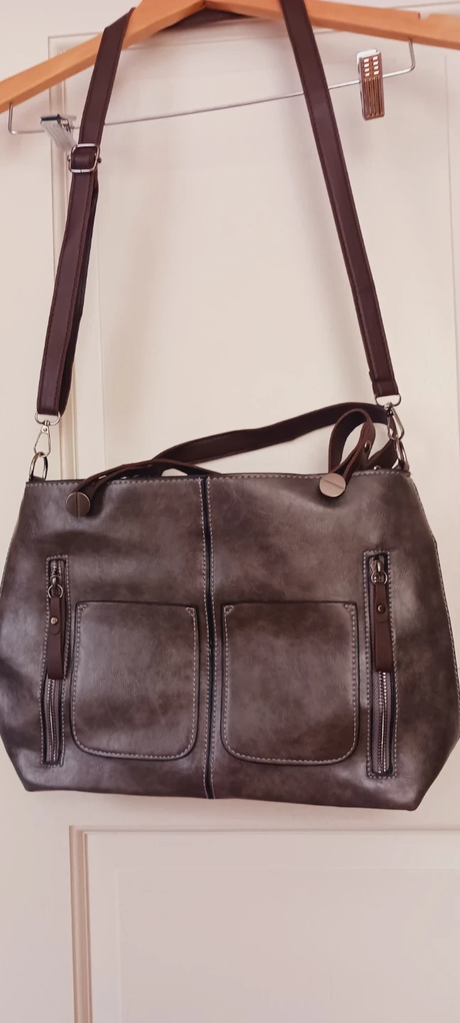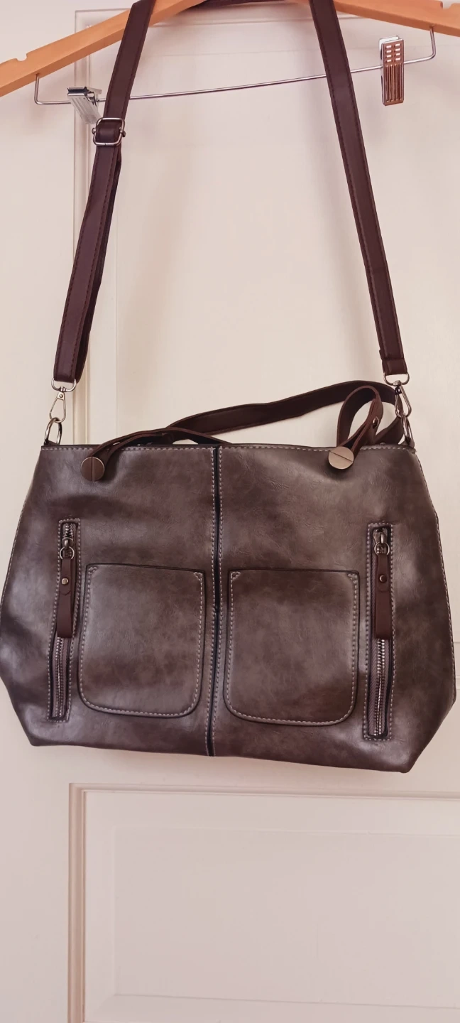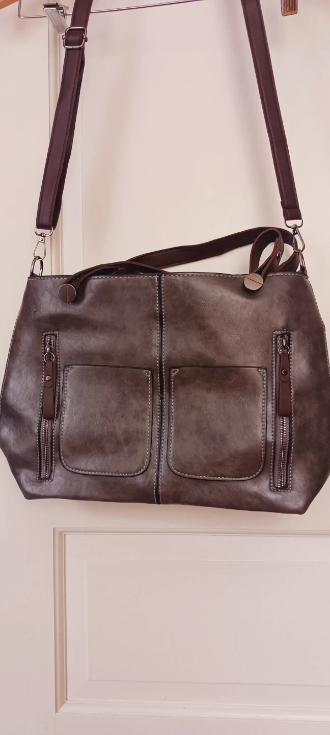 New !! This stylish brown faux leather shoulder bag features a spacious main compartment and multiple exterior pockets for organization. It comes with both shoulder straps and a longer adjustable strap for versatile carrying. The bag's material is easy to clean and durable for everyday use!!! New !! The size of the bag itself is 15"×14". The strap size is adjustable. ALL MY PRICES ARE NEGOTIABLE !! BRAND NEW !! NEVER BEEN USED !!