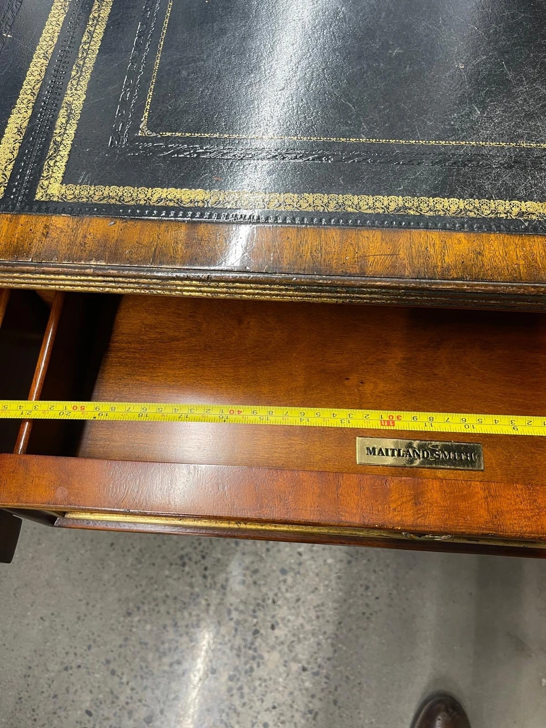 leather top desk, mahogany desk, writing desk, executive desk, traditional desk, brass hardware desk, office furniture