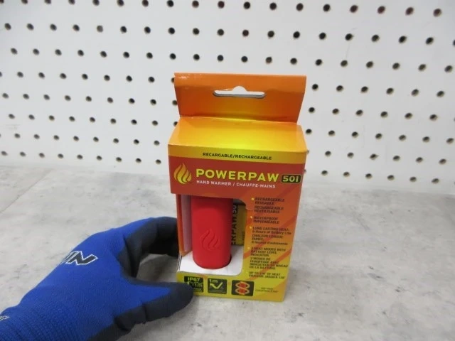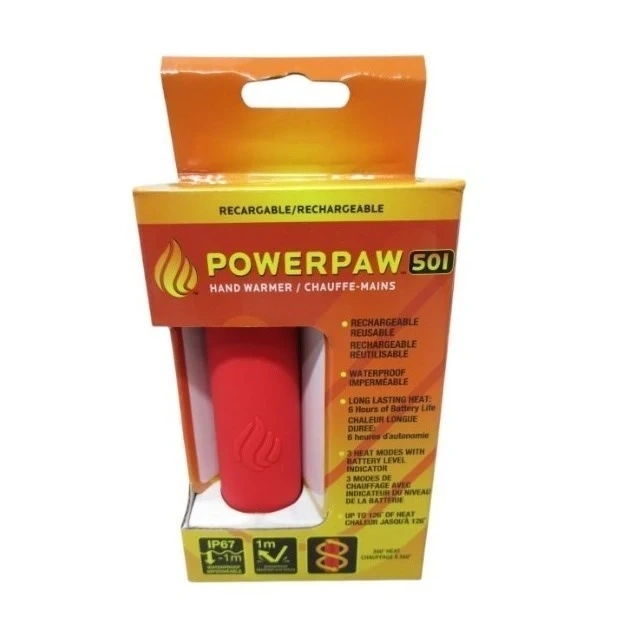 This is a PowerPaw 501 rechargeable hand warmer. It offers 360° heat coverage with a slim, anti-slip silicone body. It's waterproof and has long-lasting battery life with multiple heat settings.