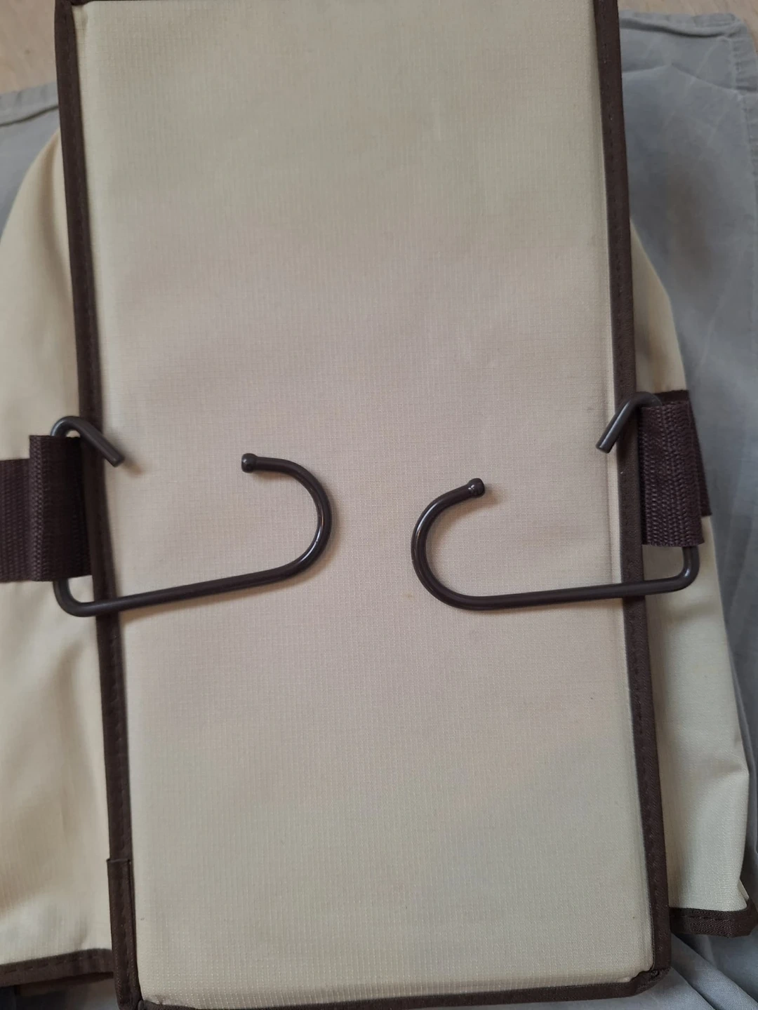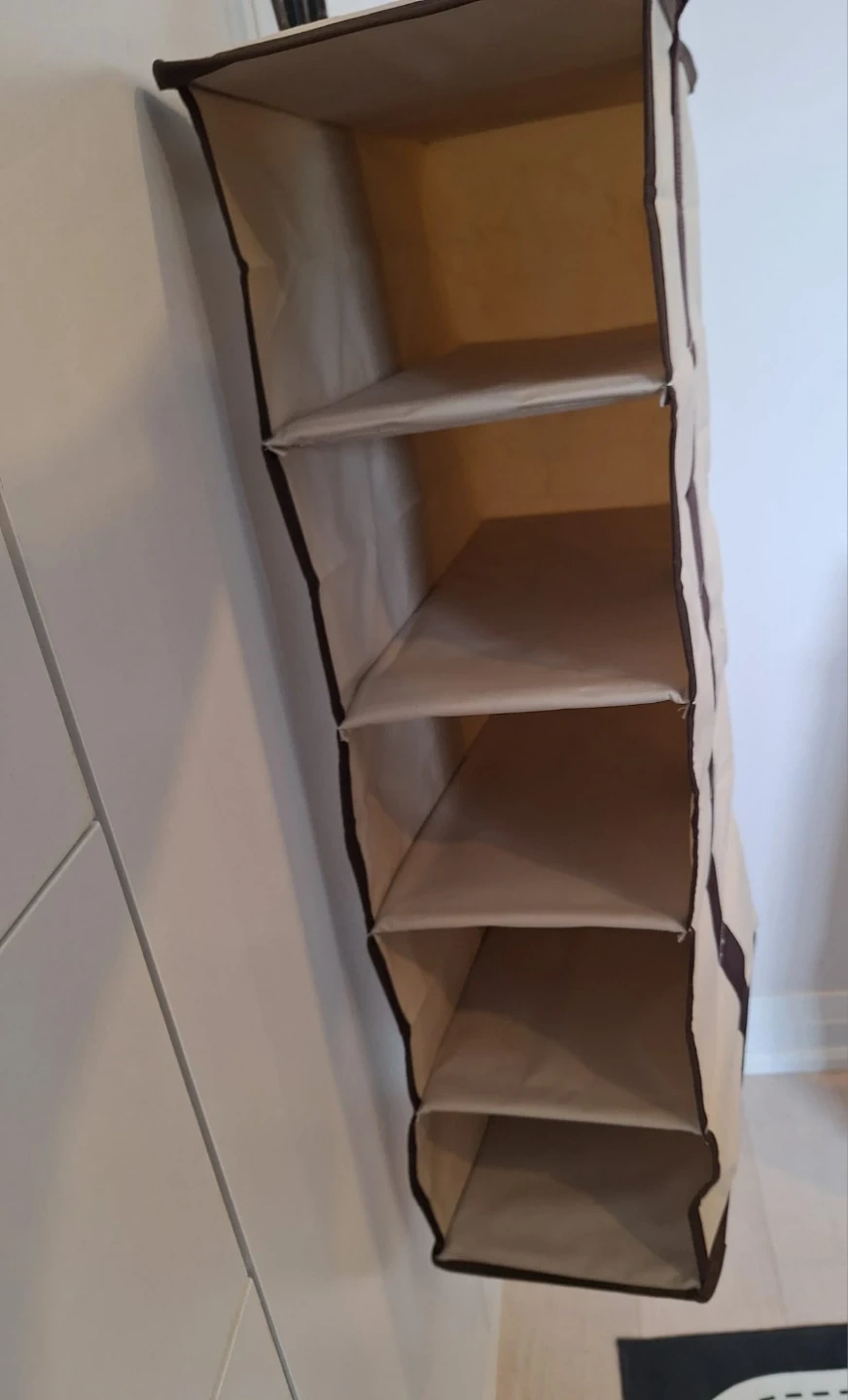 Strong and sturdy hanging shelf with 5 slots. Each shelf is 7 inch × 14 inch and very firm, does not bend. Hardly used and in as new condition.