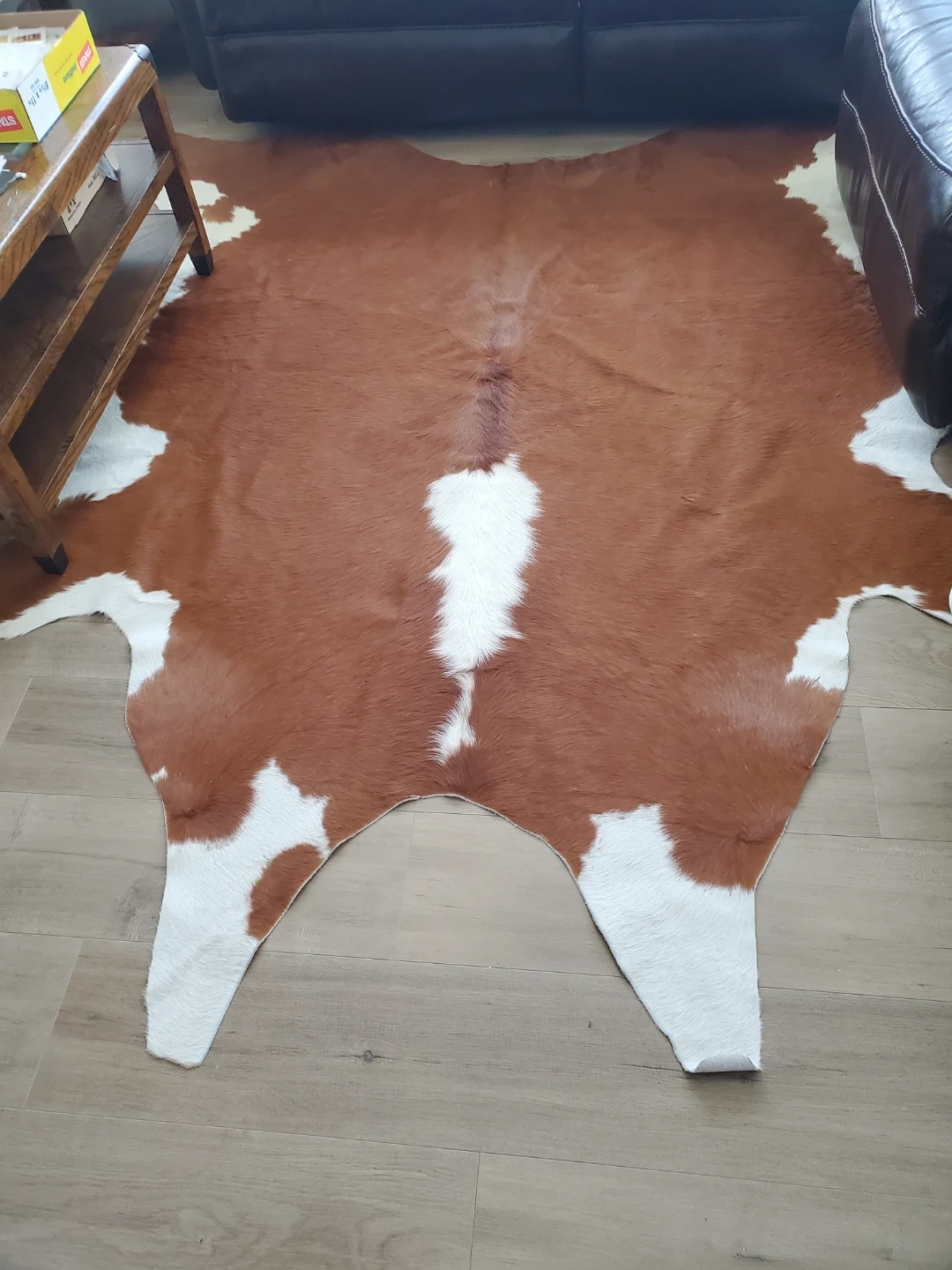 Add a unique touch to your home with this natural cowhide rug. It features a classic brown and white pattern. This genuine hide adds a rustic and stylish element to any room.