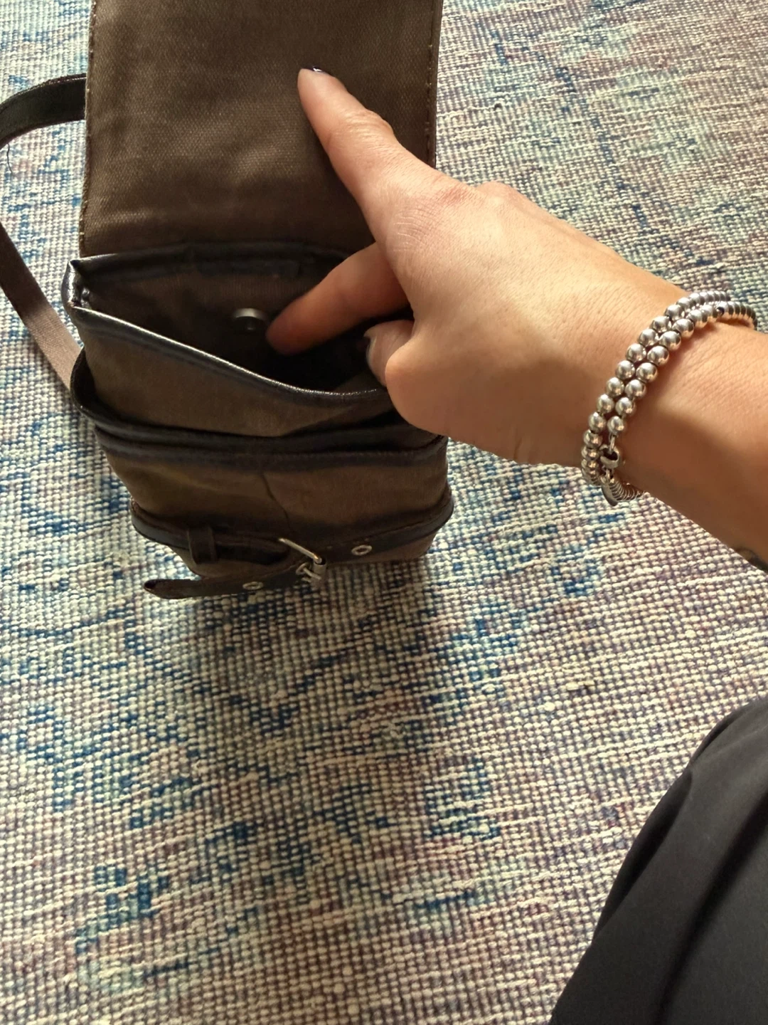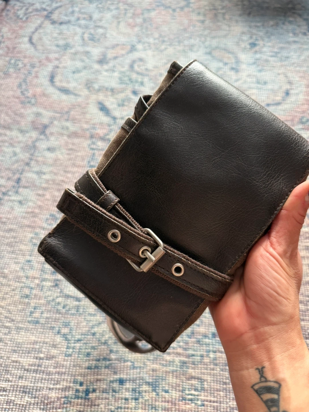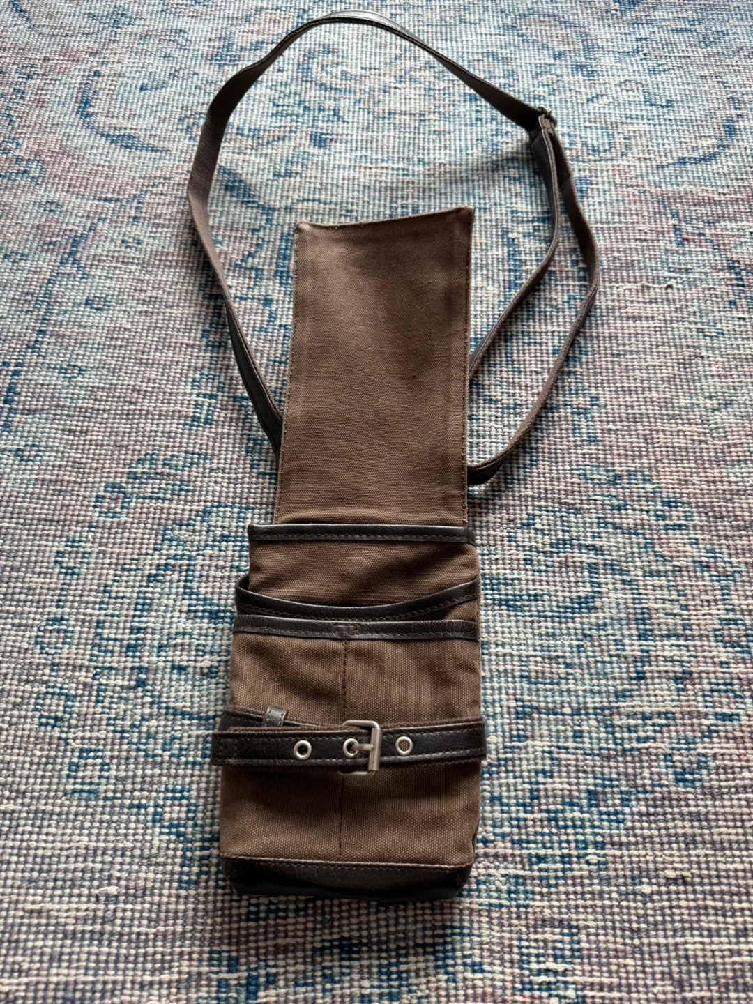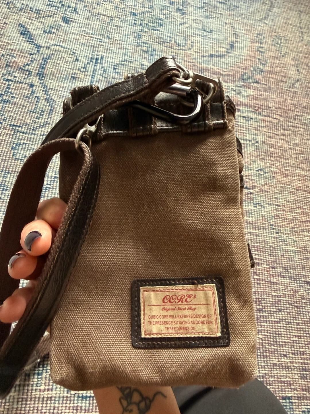 This cubic core crossbody bag is made with a durable canvas and leather construction. It features multiple pockets and a secure buckle closure. It's a practical size for everyday essentials. Gently used and looking for a new home