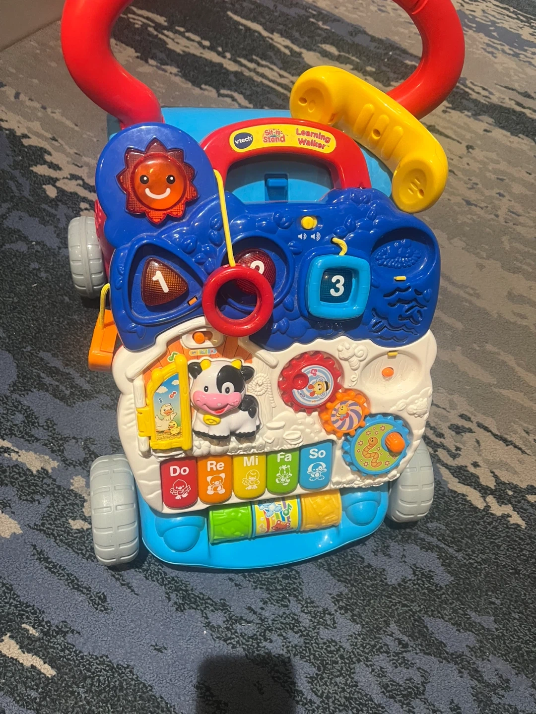 This VTech Sit-to-Stand Learning Walker is a great way to help your little one learn to walk. It has a colourful activity panel with a piano, buttons, and a steering wheel. It's designed for babies aged 9 months and up. Perfect for encouraging motor skills and cognitive development!