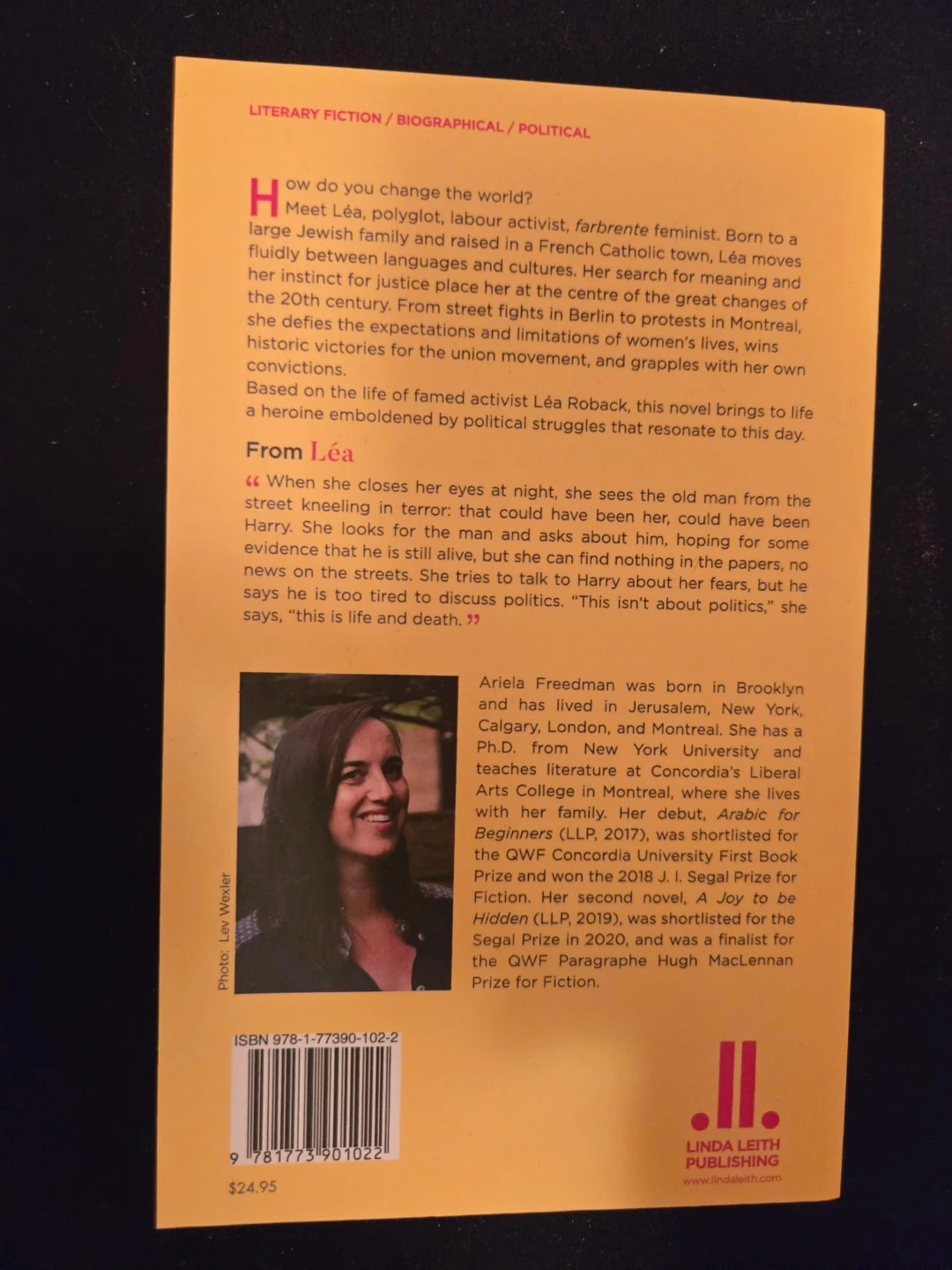 A novel by Ariela Freedman based on the life of famed activist Léa Roback. This book explores themes of Polish Jewish heritage, labour activism, and French Catholic culture. It follows Léa's journey through the significant events of the 20th century.
