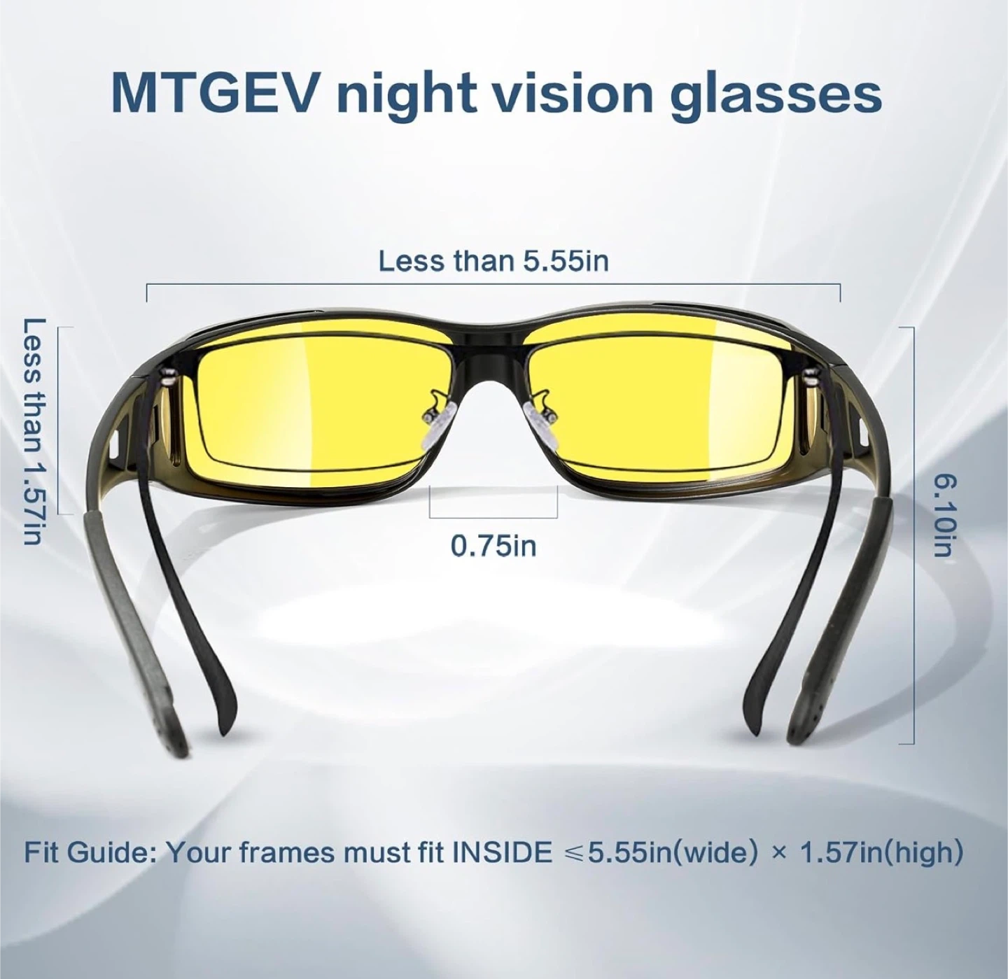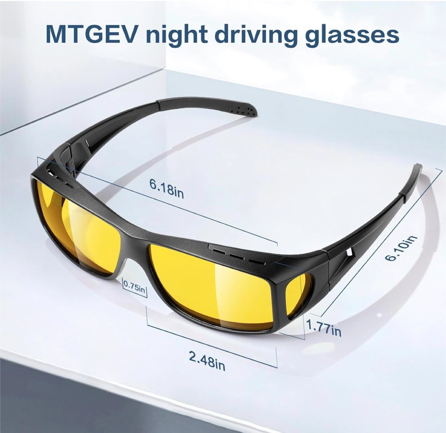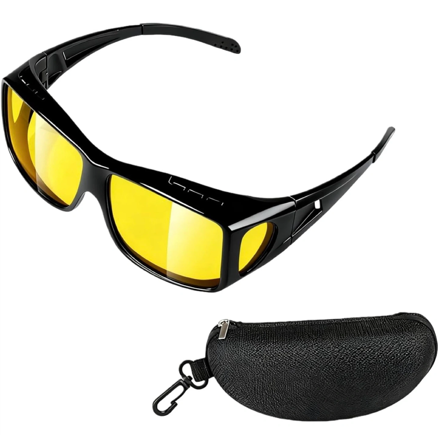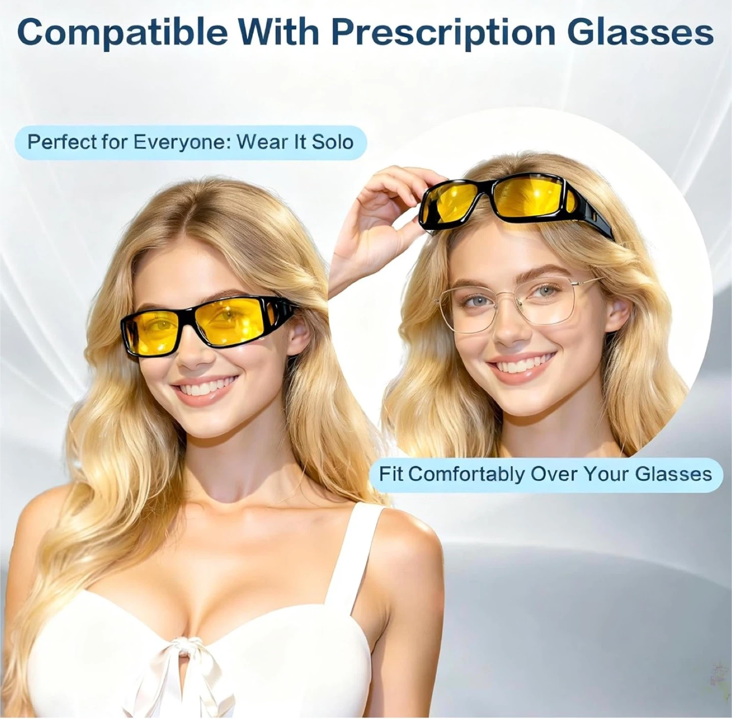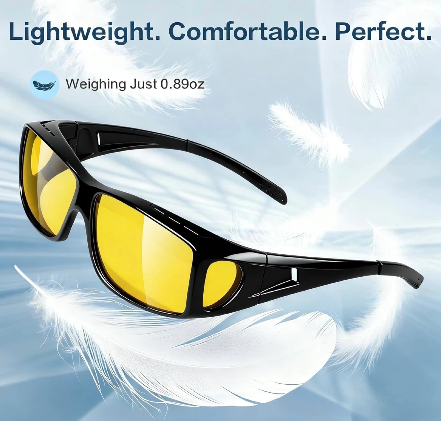 Night-Driving-Vision-Glasses Men-Women Anti-Glare - Polarized Fit Over Prescription Glasses, Improves Visibility in Night, Rain, Fog & Snow,Night Vision Glasses for Driving,Night time