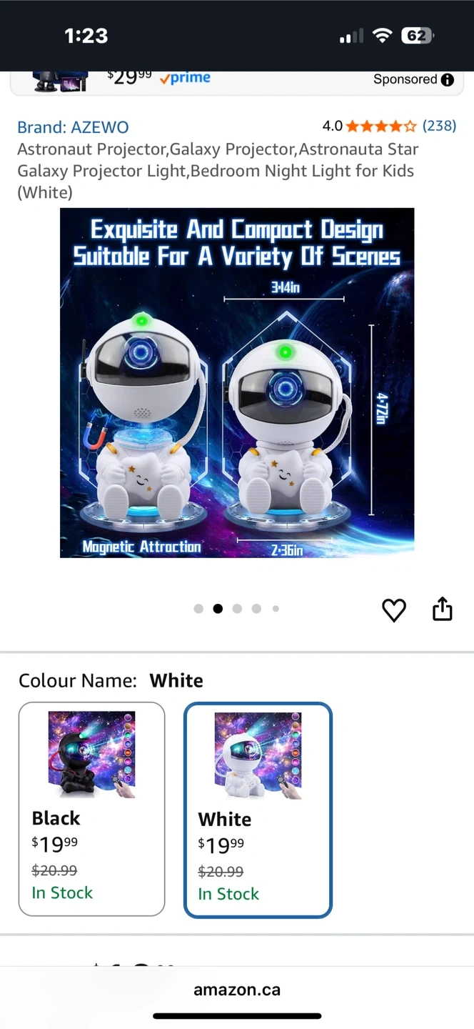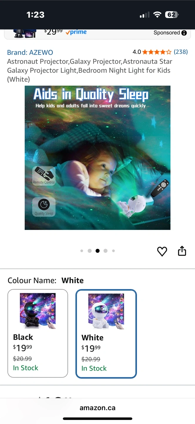 This is an astronaut nebula projector night light. It projects a galaxy and nebula effect onto your ceiling. It's white and includes a remote control. Helps create a relaxing atmosphere for sleep!