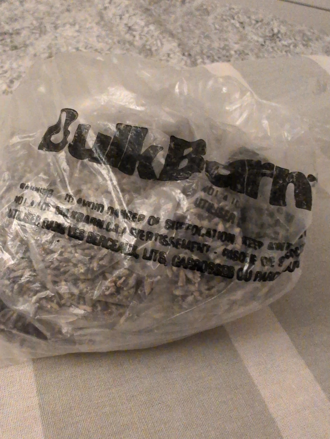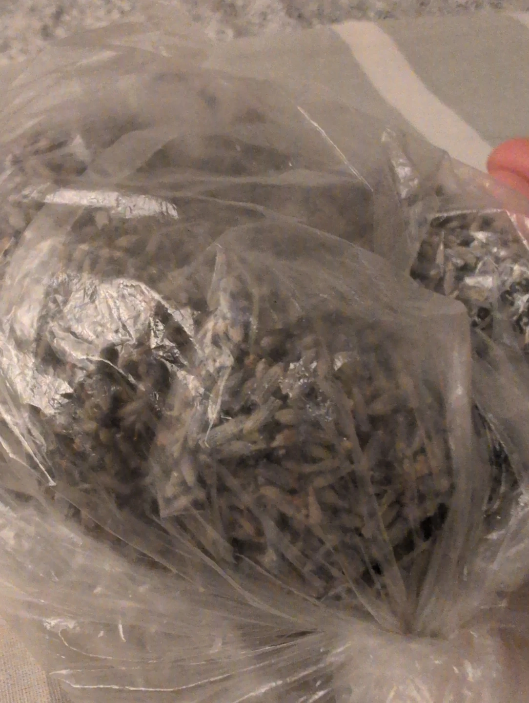 This is a bag of dried lavender from Bulk Barn. It's great for aromatherapy or crafting projects. NOT for edible consumption. Leftover from a crafts project.