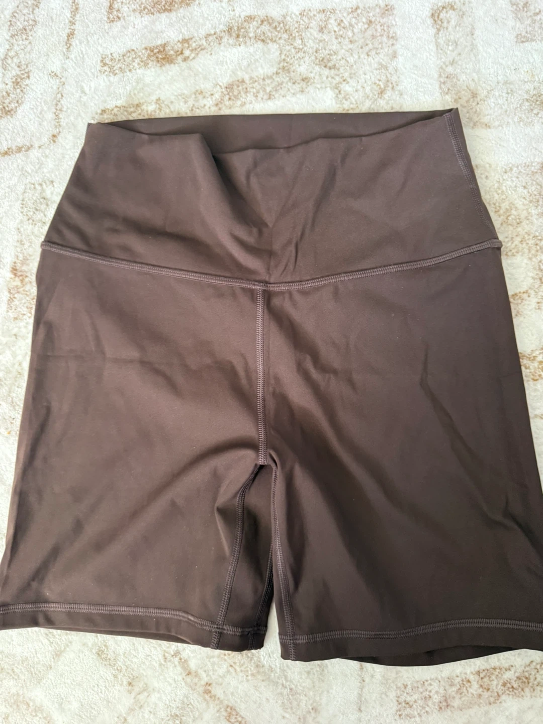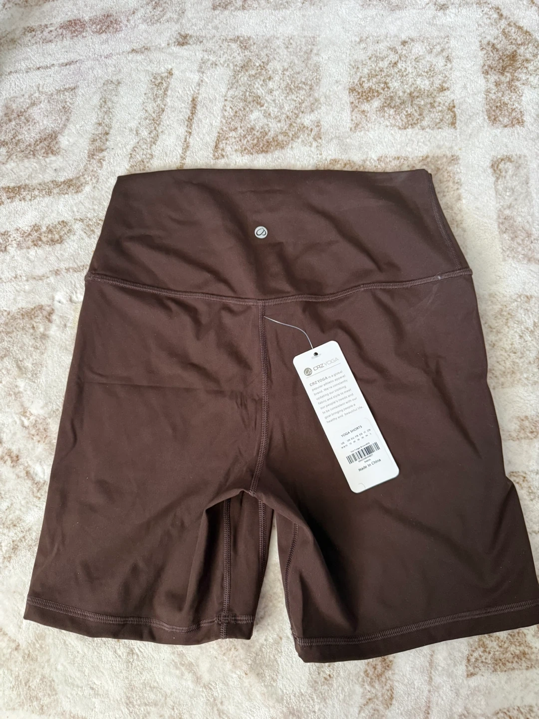 CRZ YOGA biker shorts in a rich brown colour. These shorts are made for comfort and performance. They offer a flattering high waist and a stretchy fit for all your activities. These shorts are great for workouts or everyday wear! Size Medium
