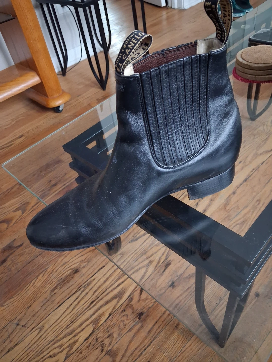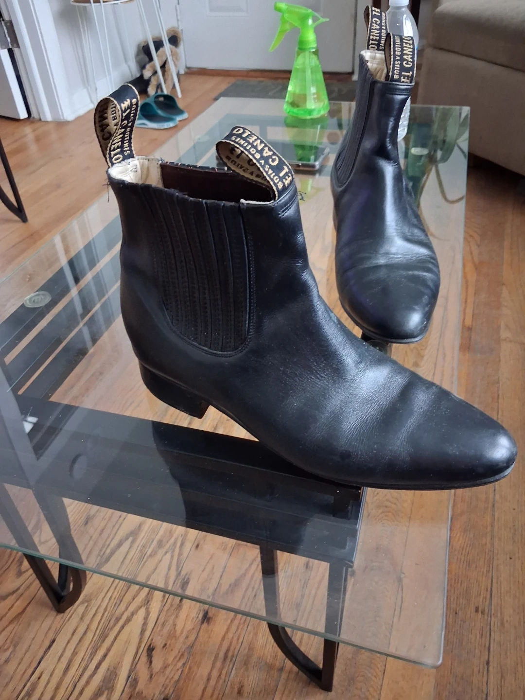 These are El Canelo black leather Chelsea boots. Leather material with elastic side panels. A classic style for everyday wear!