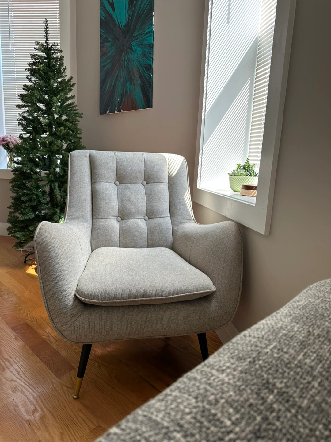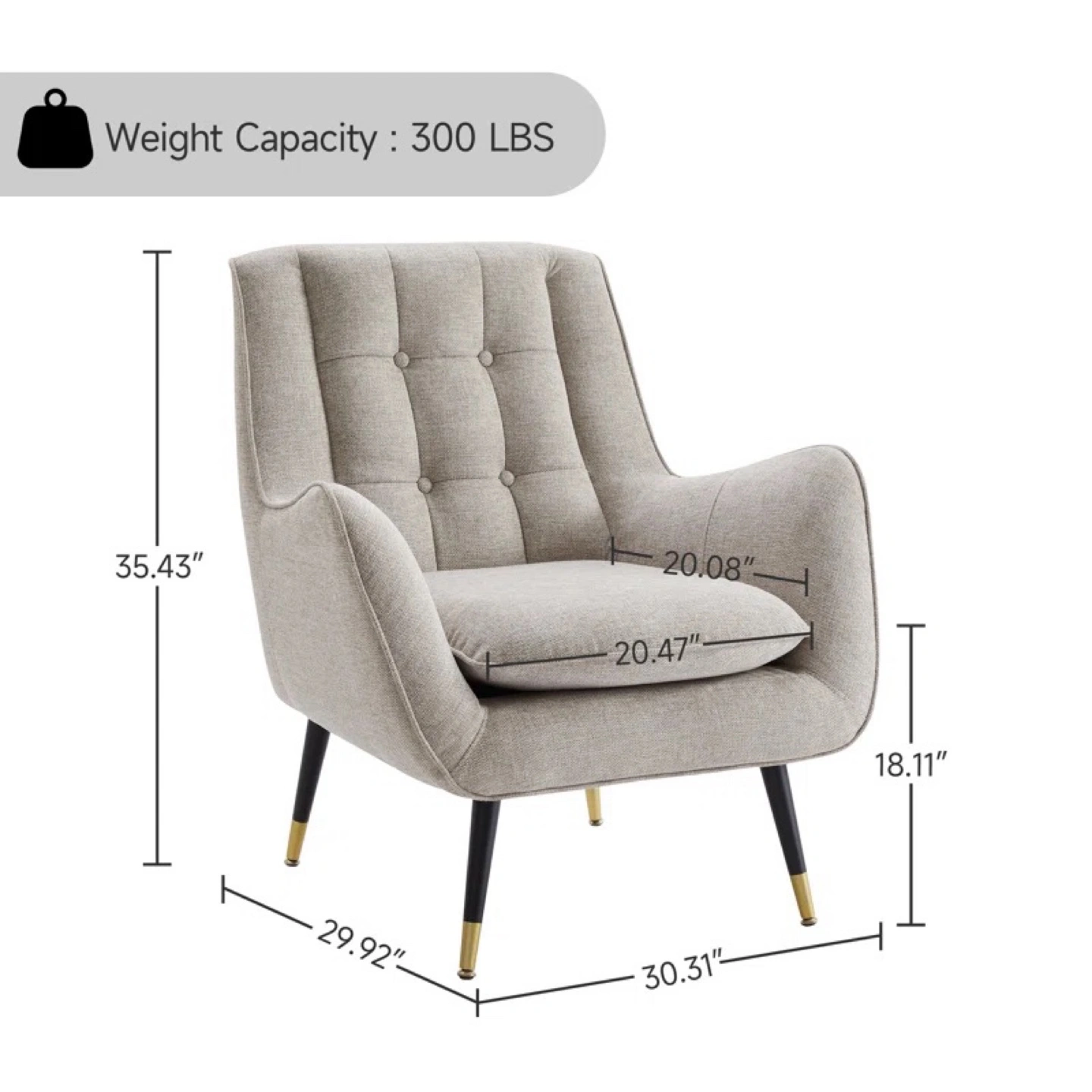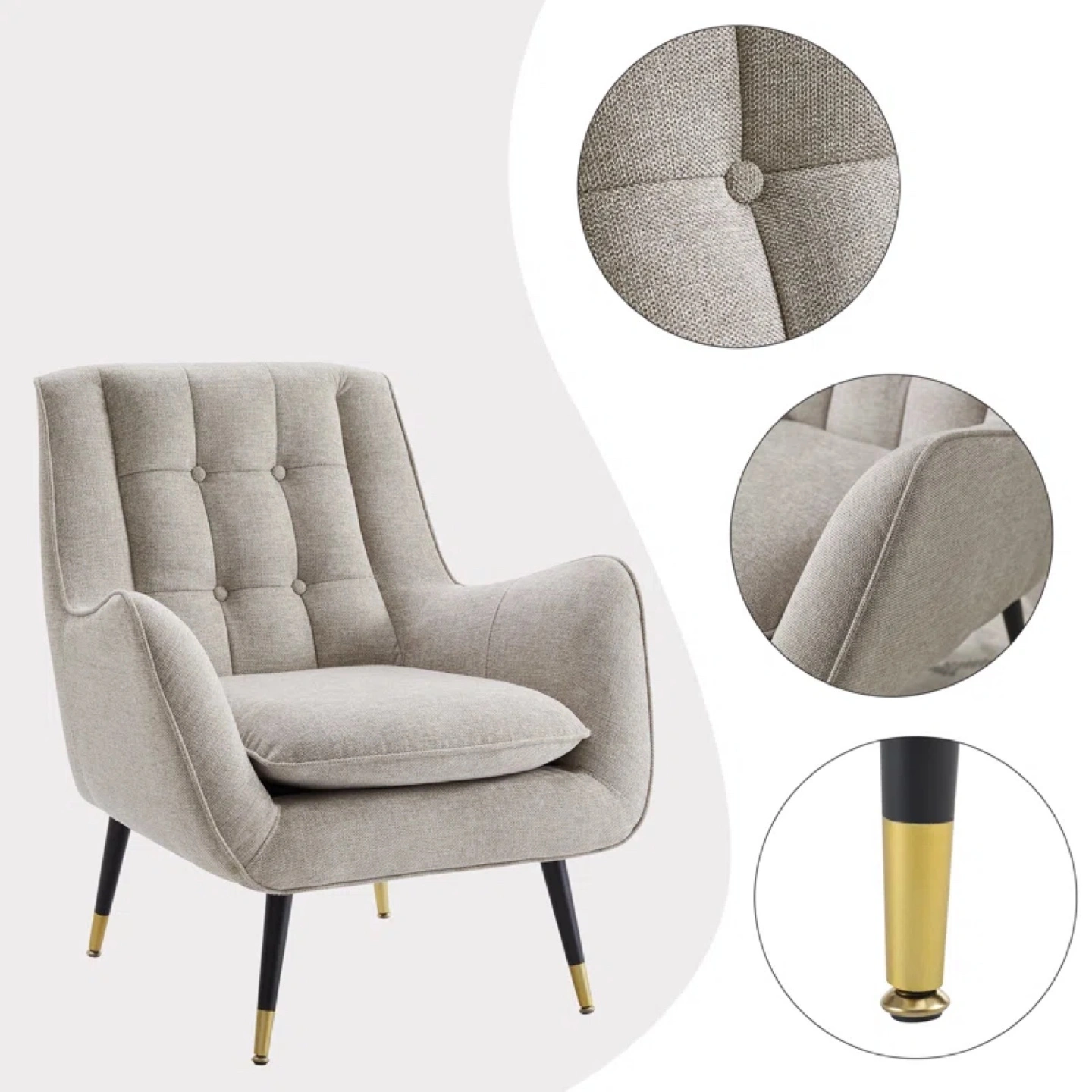 Features button detailing on the back and subtle gold accents on the legs. This chair would make an excellent spot for reading a good book.