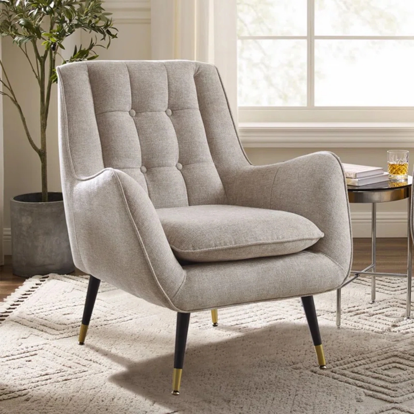 Beige Tufted Accent Chair by Mercury Row