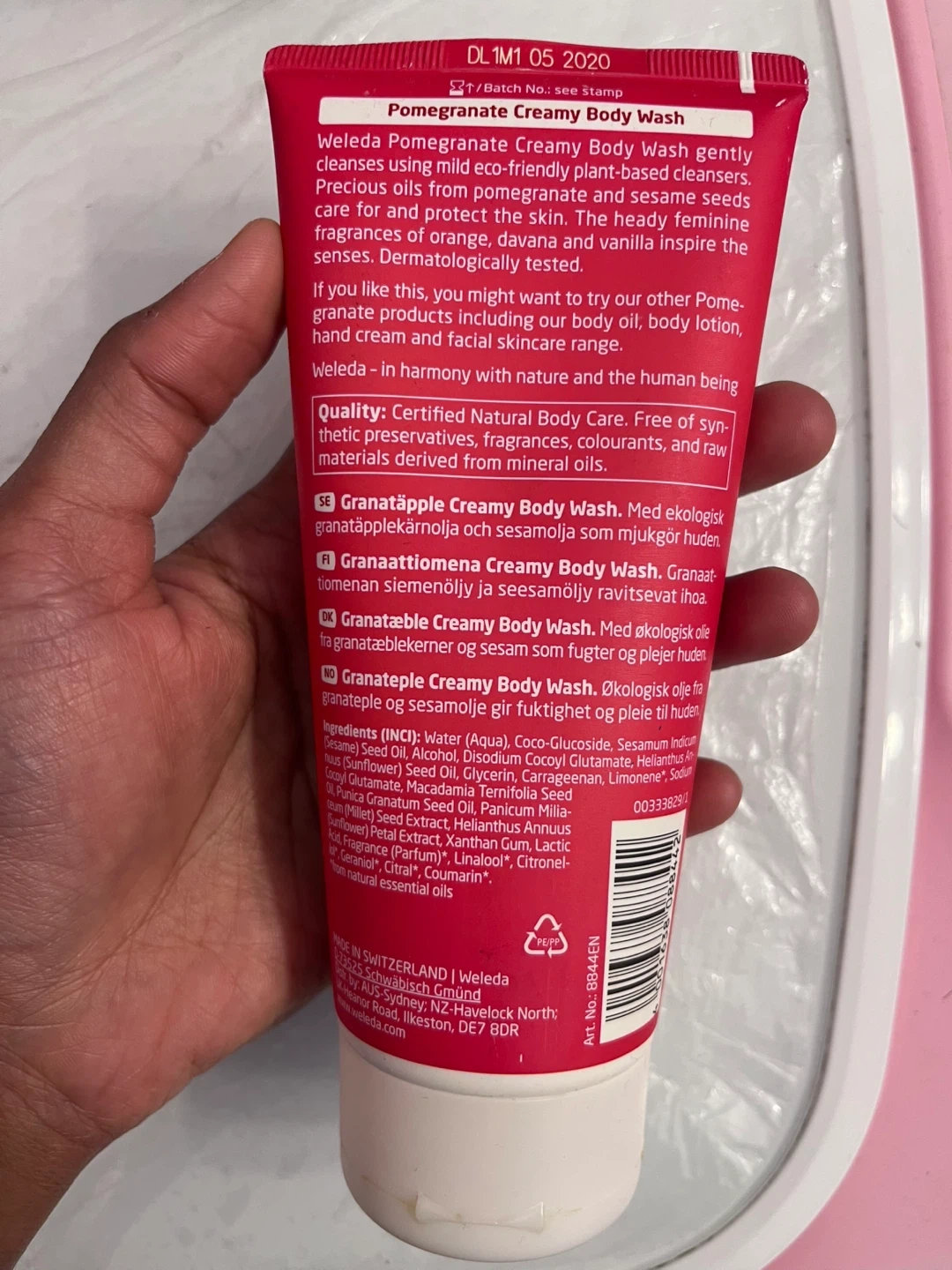 This creamy body wash gently cleanses using mild, eco-friendly plant-based cleansers. It contains organic pomegranate seed oil and inspires the senses. Certified Natural Body Care. 200 ml. About 80-90% intact