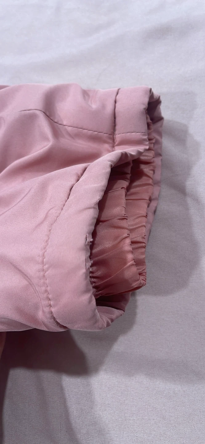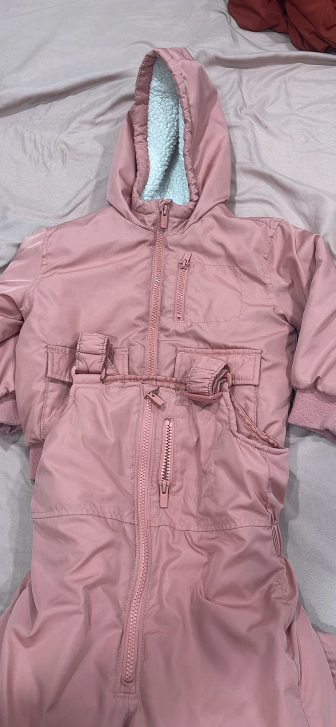 This pink snowsuit has a cozy sherpa lining and a full zip front closure. It features elasticized cuffs for a snug fit. Great for keeping warm in the winter!