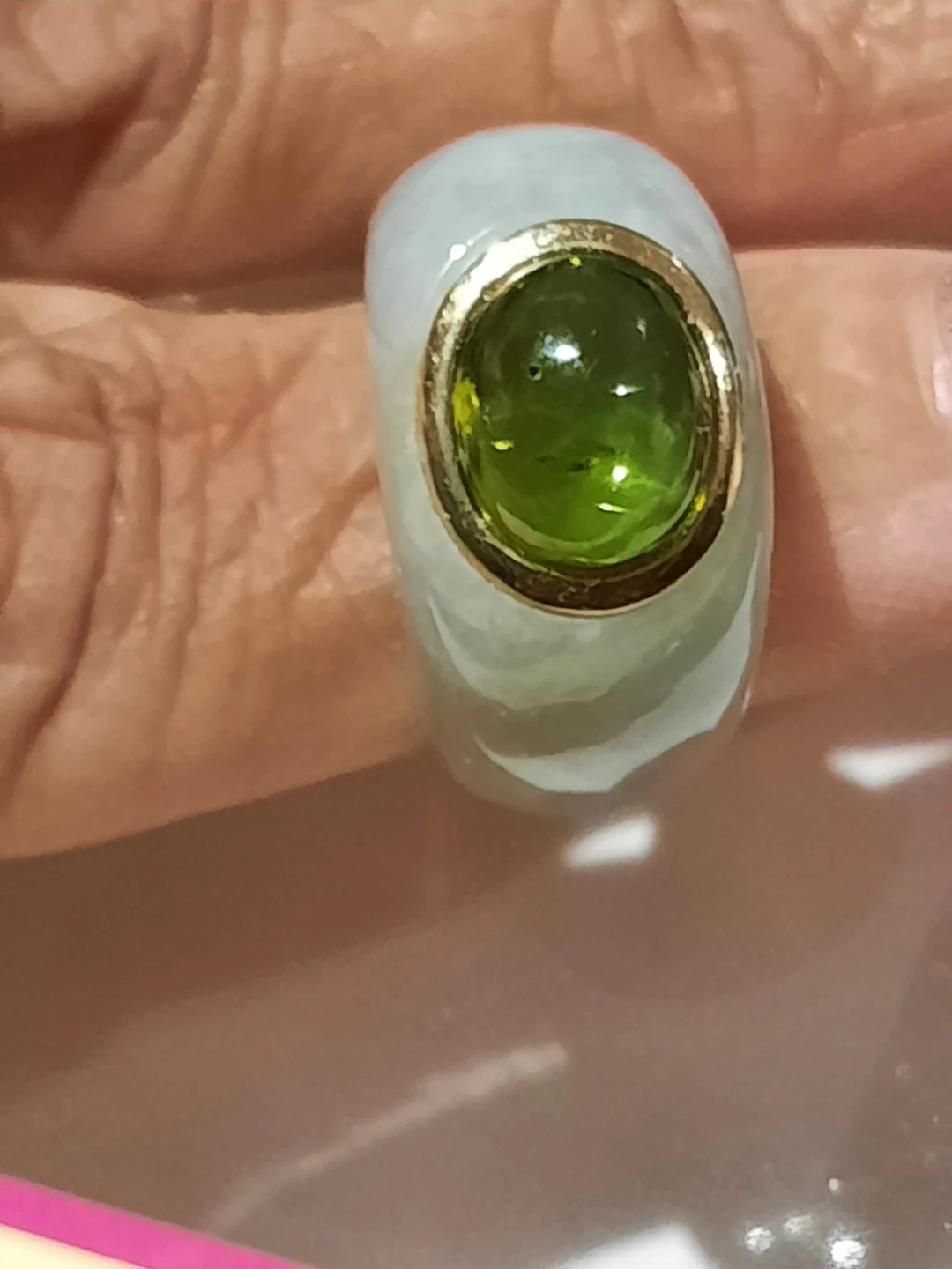 Solid 14K Yellow Gold Green JADE PERIDOT Ring