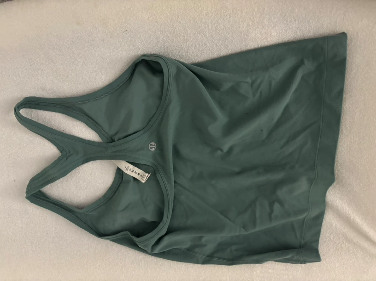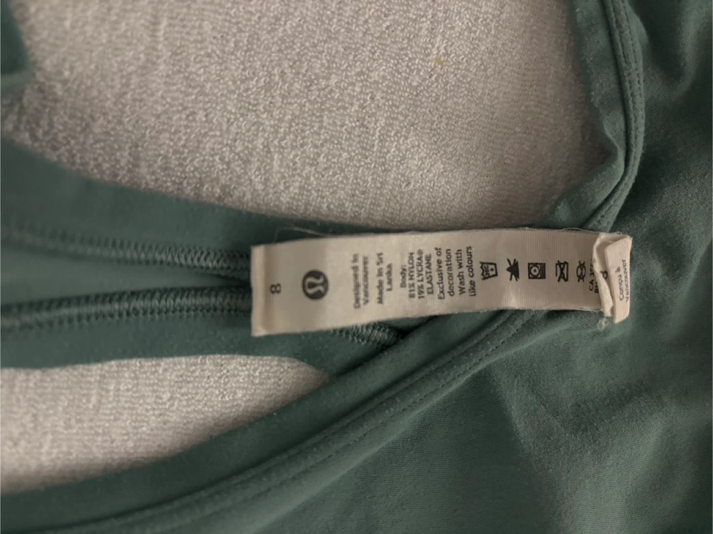 This is a Lululemonathletica tank top in size 8. It's made from 81% Nylon and 19% Lycra. Designed in Vancouver.