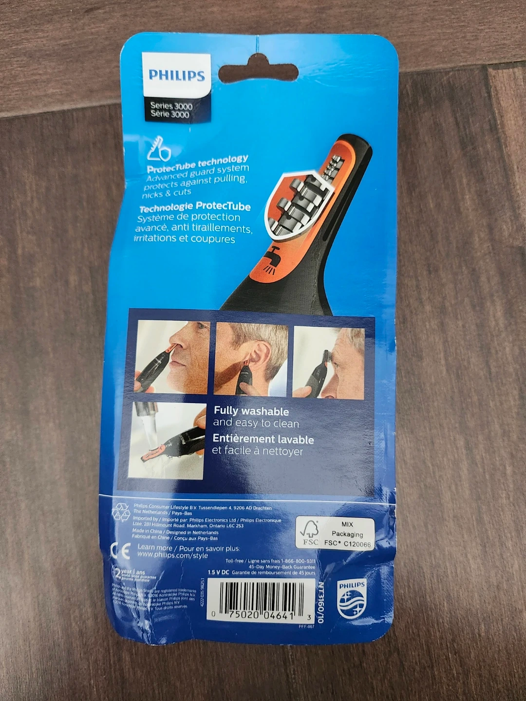 This Philips Series 3000 trimmer is designed to trim nose, ear, and eyebrow hair. It features ProtecTube technology for comfort and is fully washable. Includes 3mm and 5mm combs.