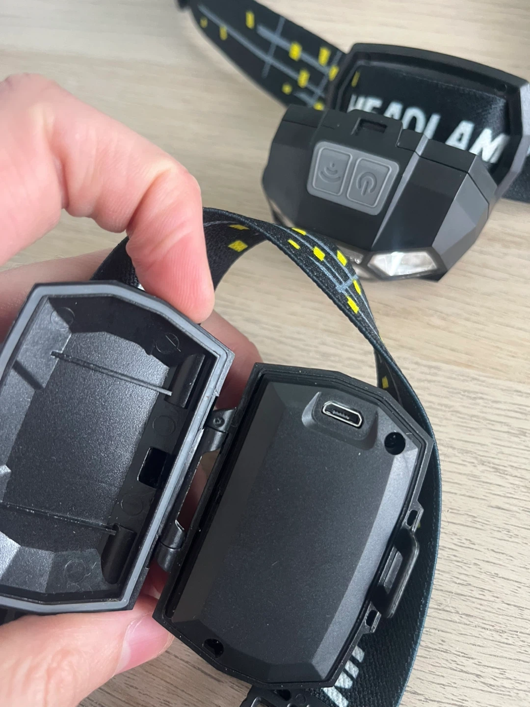5 modes and a motion sensor On/Off mode. The battery compartment is accessible for charging via micro USB. Great for outdoor activities or emergency use!