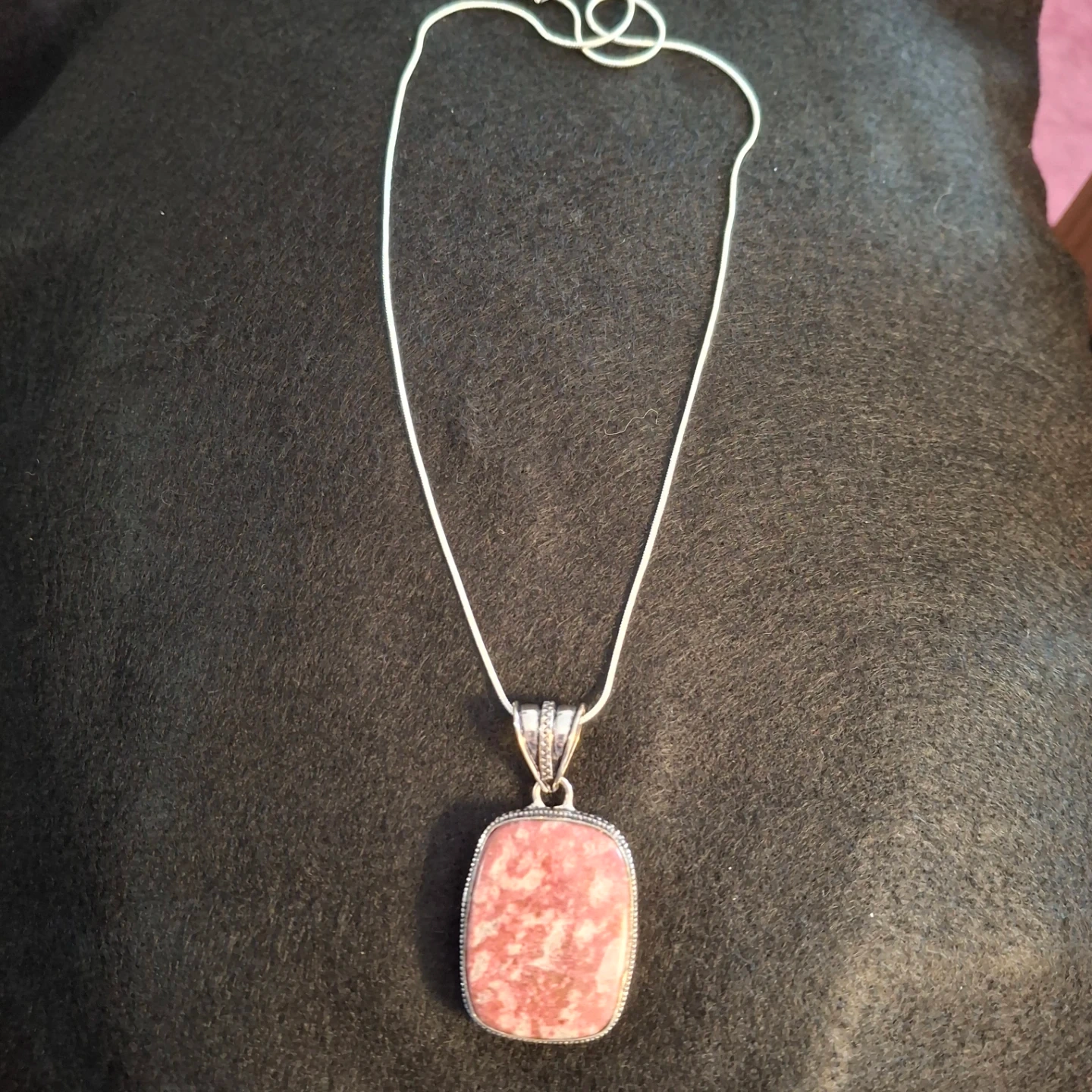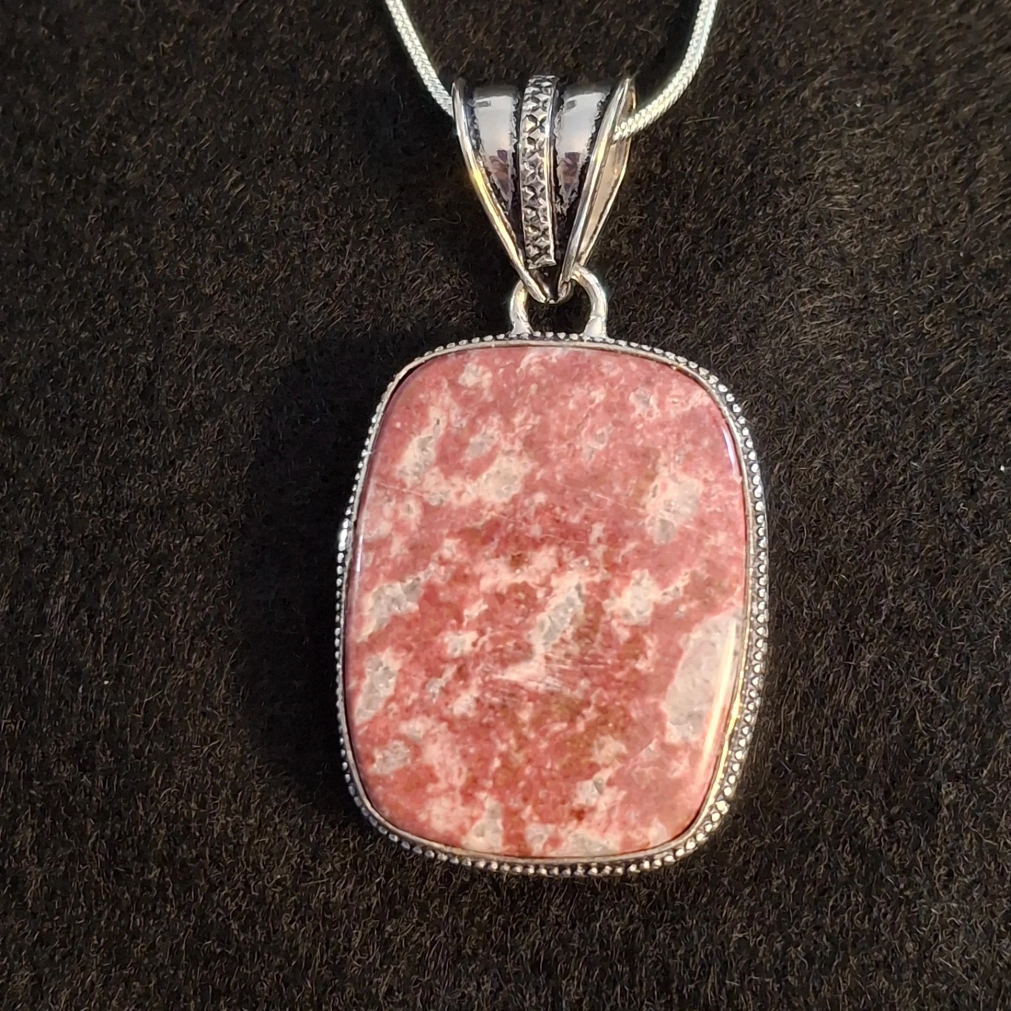 Pendant with Pink Rhodochrosite and Sterling Silver Chain